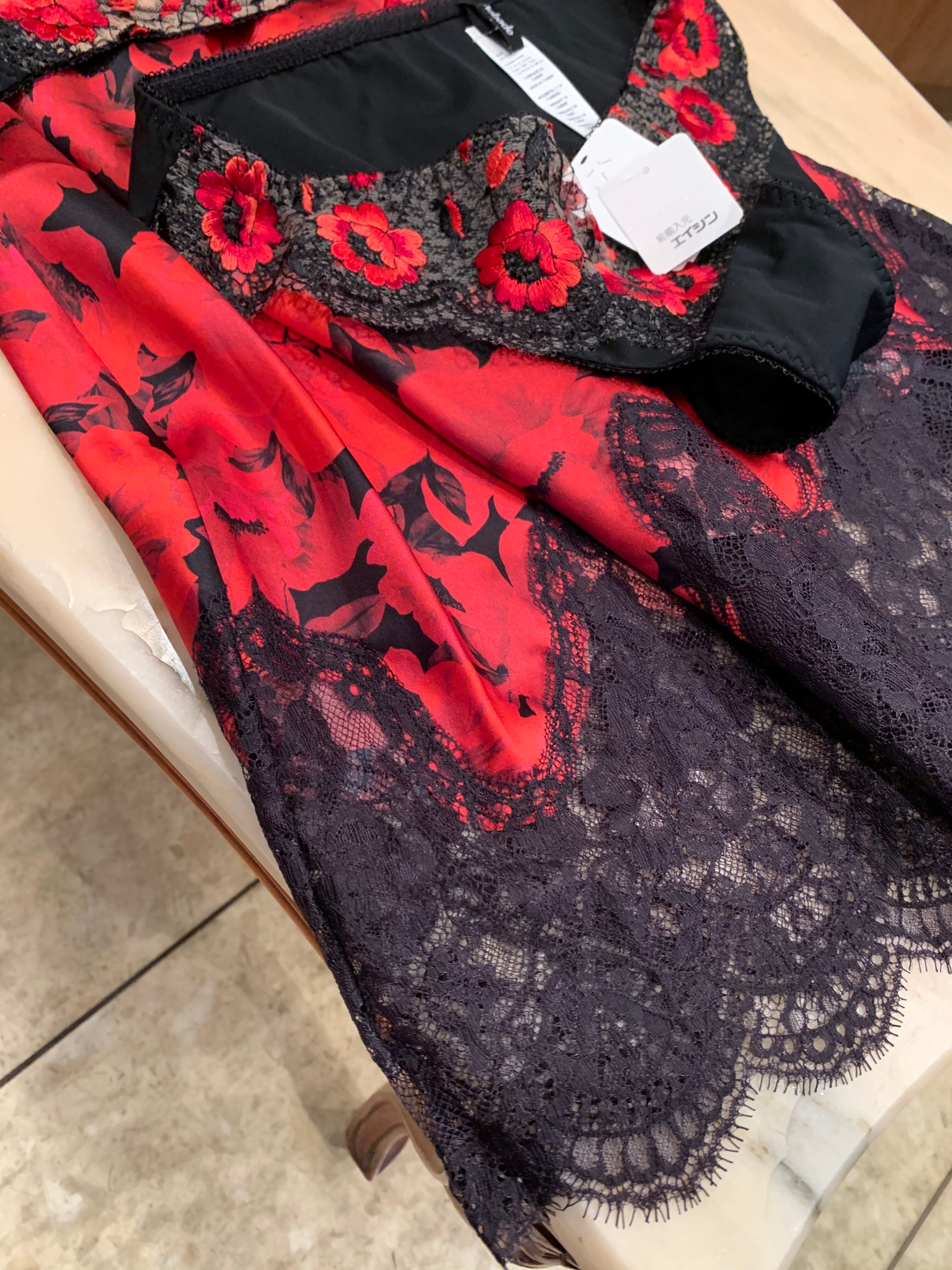 トワ.モナムール 煌めく花びらが降り注ぐように全身に驚くほど美しい花を散らしたナイトウェア、スリップです。レースが谷間とヒップの付け根なセンシュアルな透明感を与え軽やかにセクシーな効果を出しています。