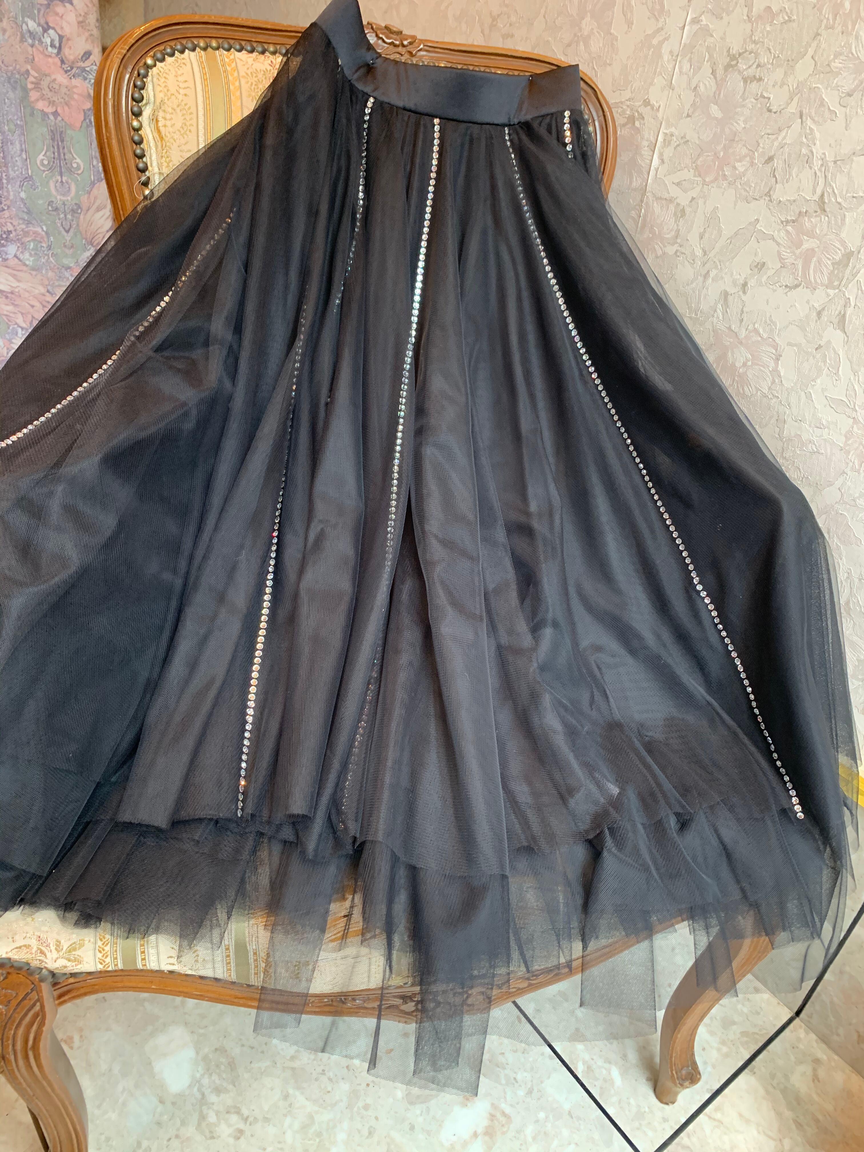 その下に綿ローンのアンダースカートが着いております。一番上のスカートにスワロフスキークリスタルが12列飾られております。