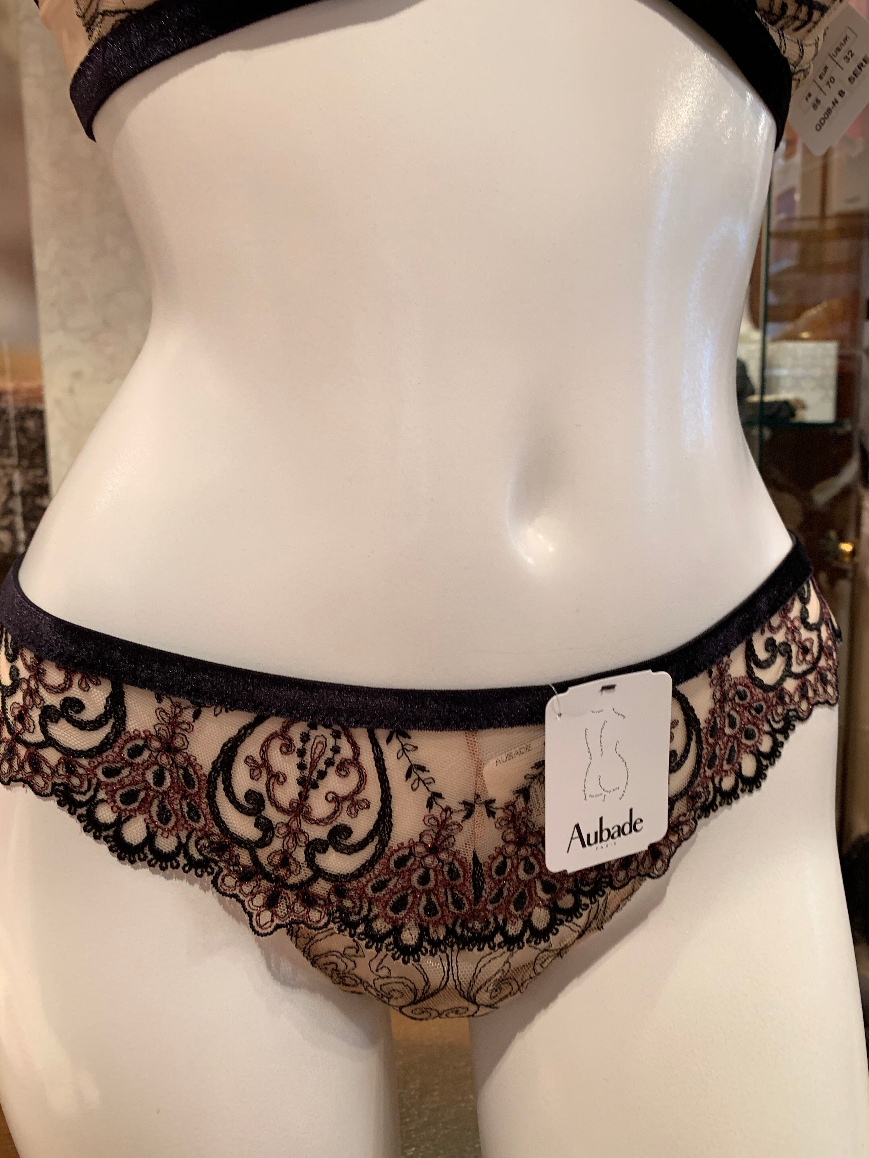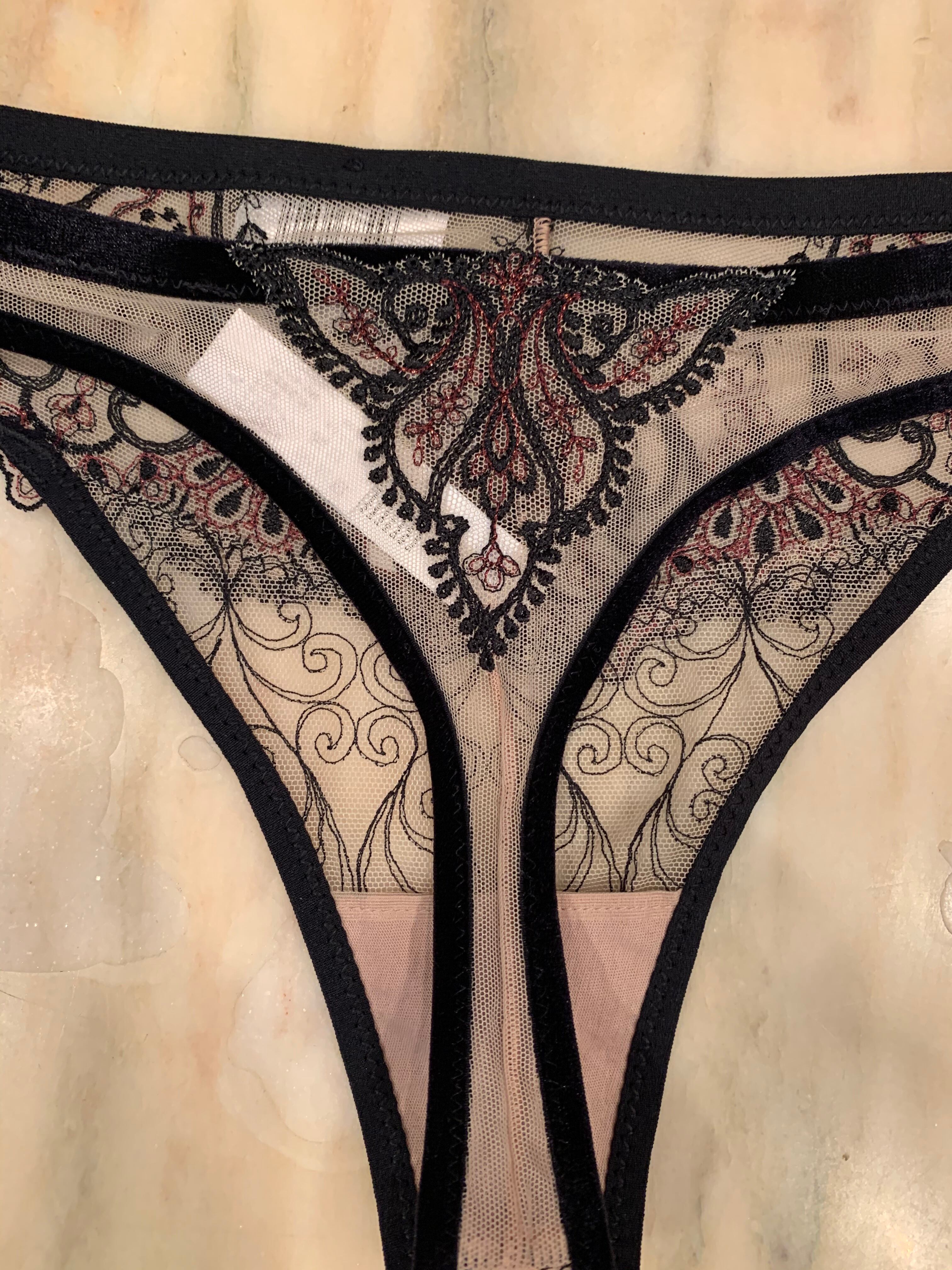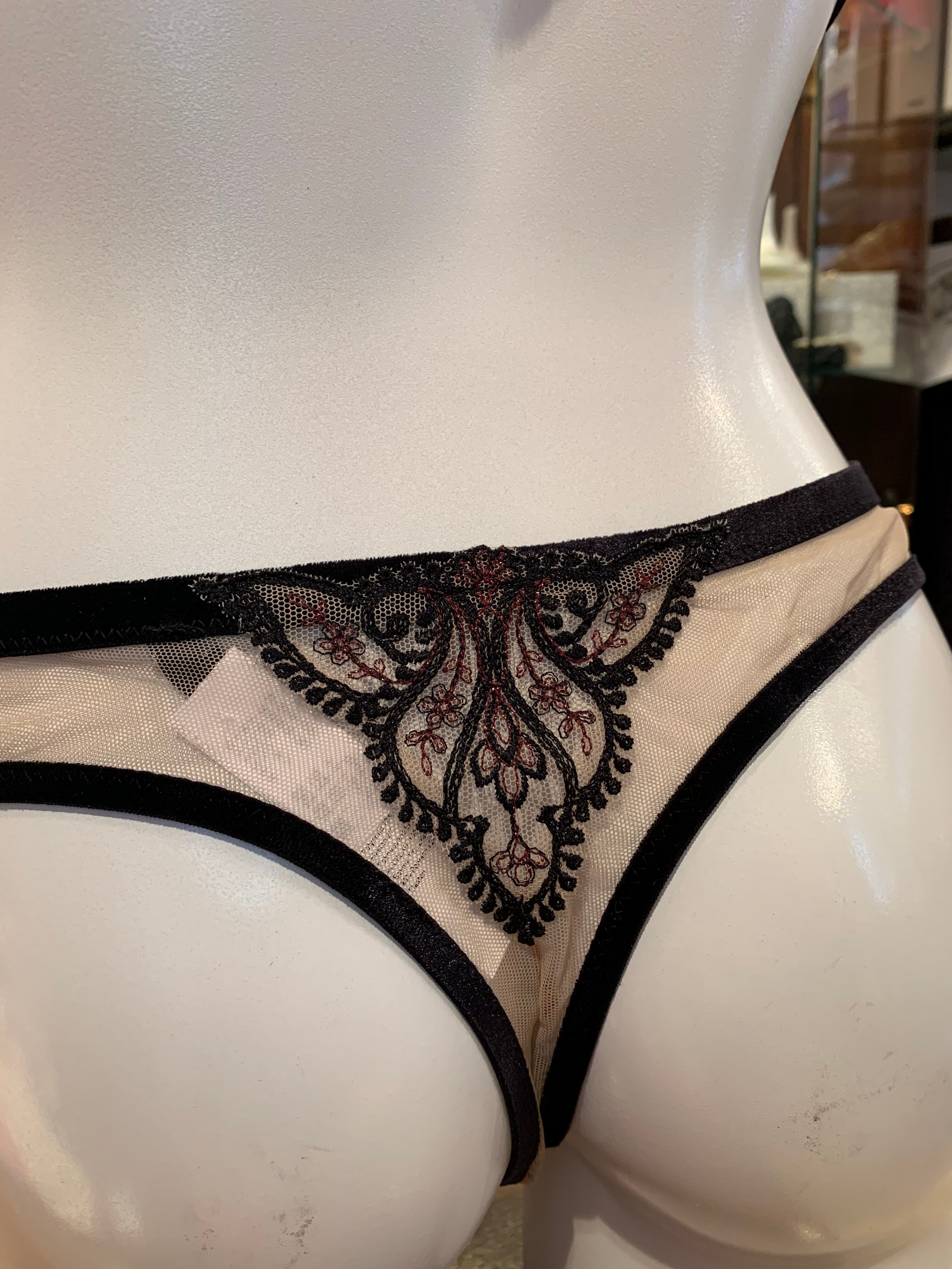 レースの透け感とリュクスなベルベットの組み合わせが魅力的なタンガ。
