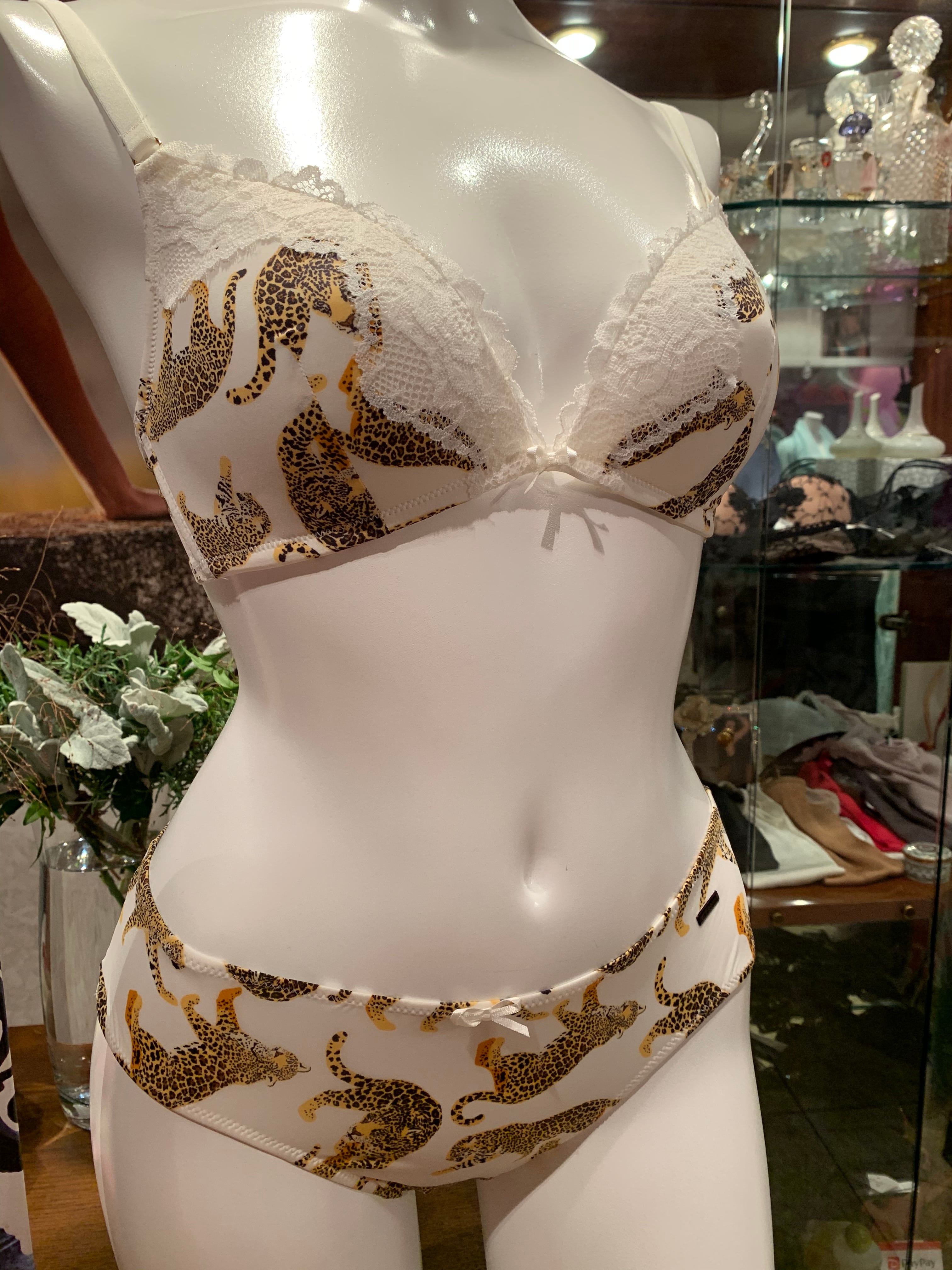♡キュートなプリントに目を奪われるブラ&ショーツセットです。