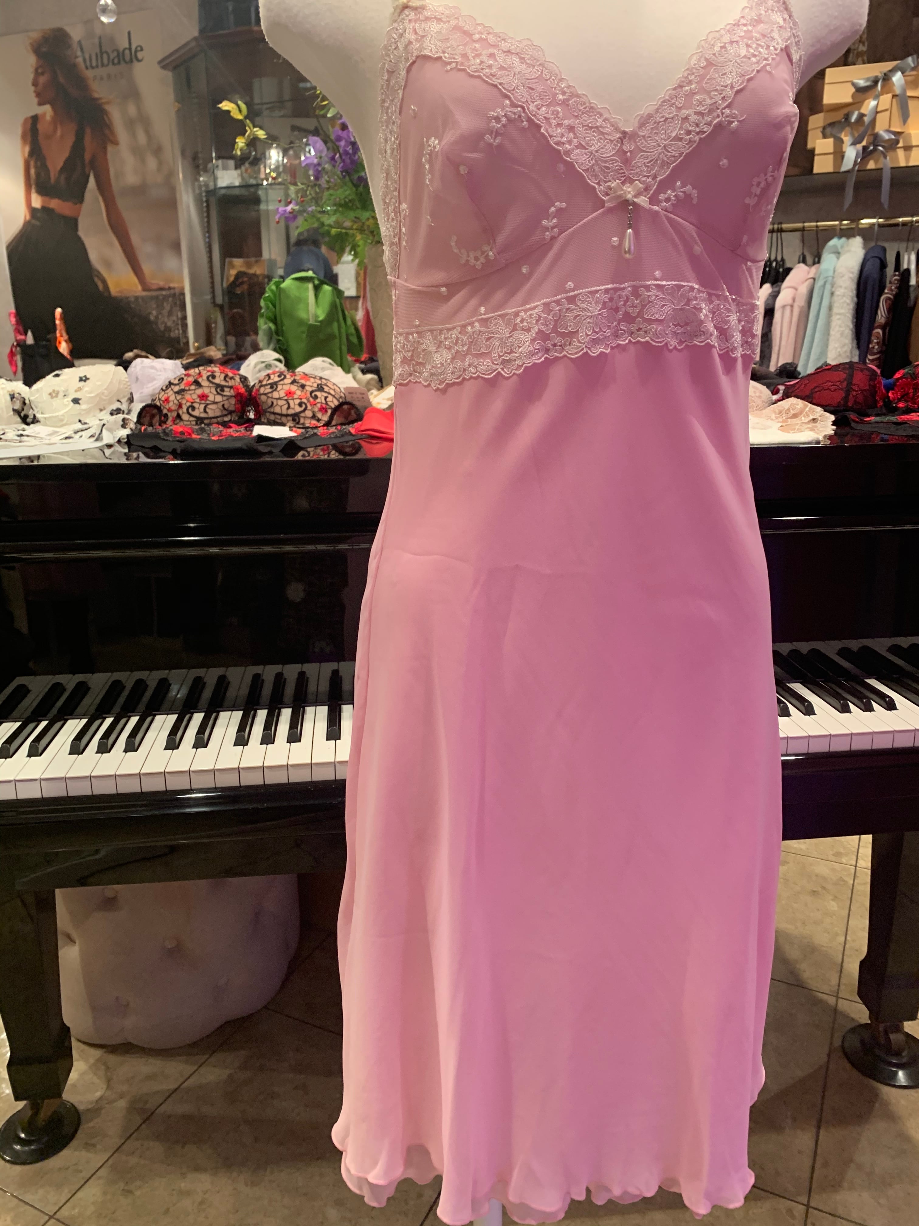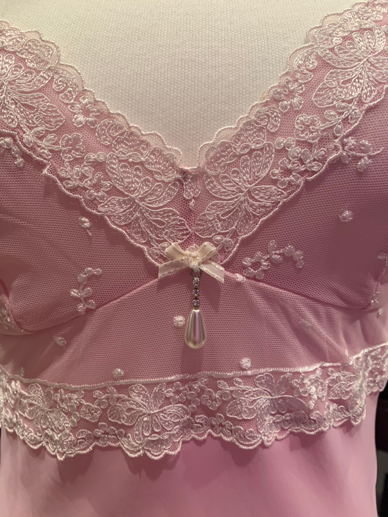 ♡スイートな明るいピンクが華やかなスリップです。 デコルテラインの白の刺繍やストラップが真っ白ですので白のランジェリーともとても合わせやすい。