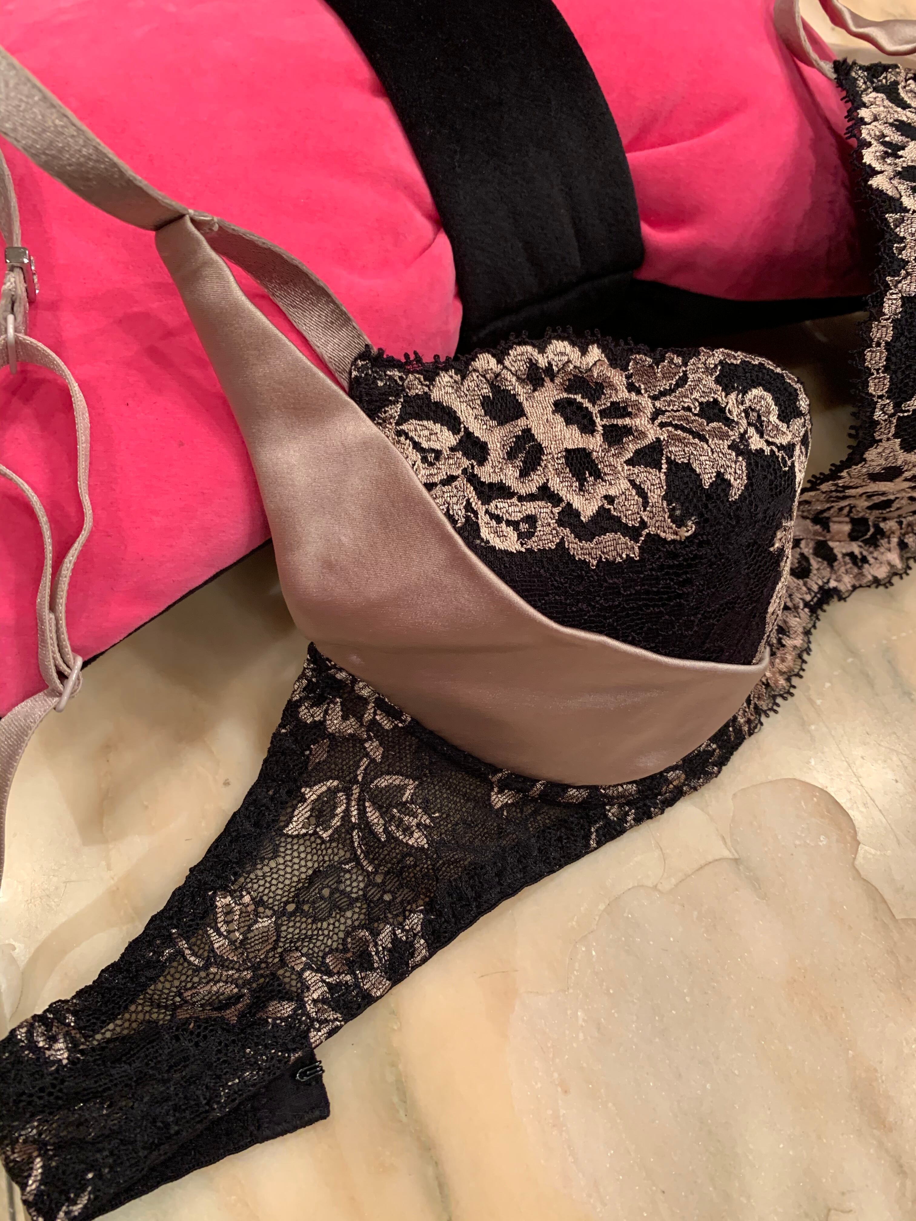 4つのセクションからなるカップはバストを引き立て、レースとシルクのドレープの組み合わせは官能的なエレガンスを生み出します。