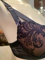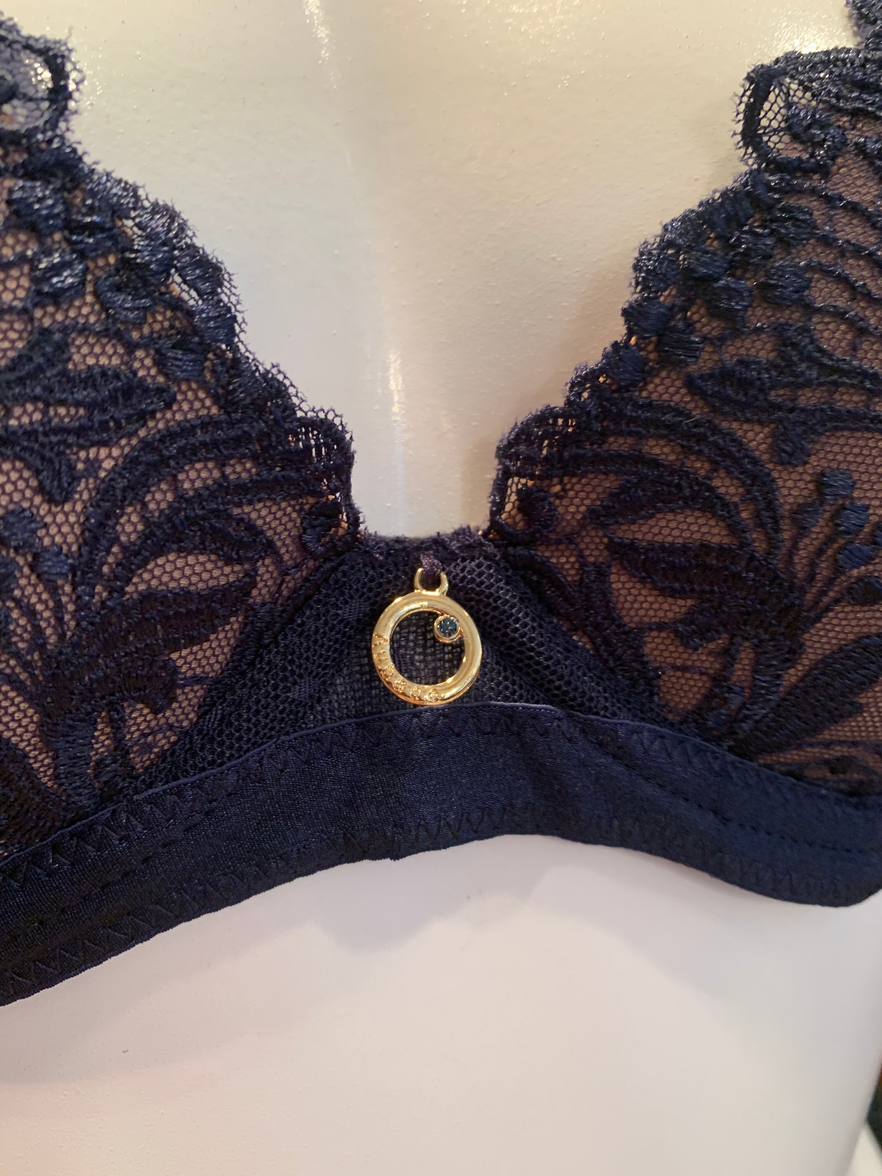 美しいシェイプを実現するモールドパテッドブラは、カップそのものが立体構造になっているため、深い谷間を演出します。カップにはドットのチュールと華やかで情熱的な刺繍が施されています。