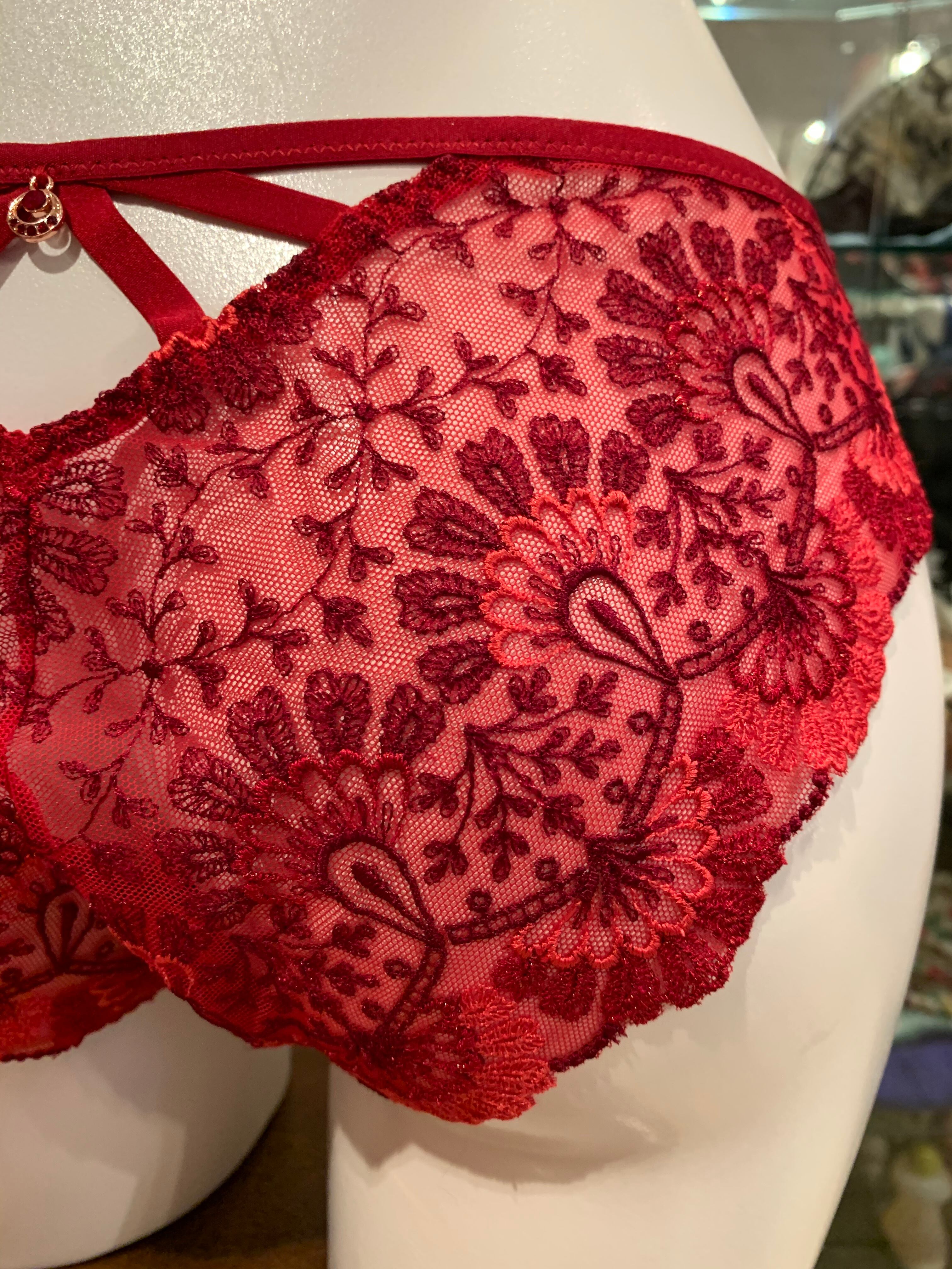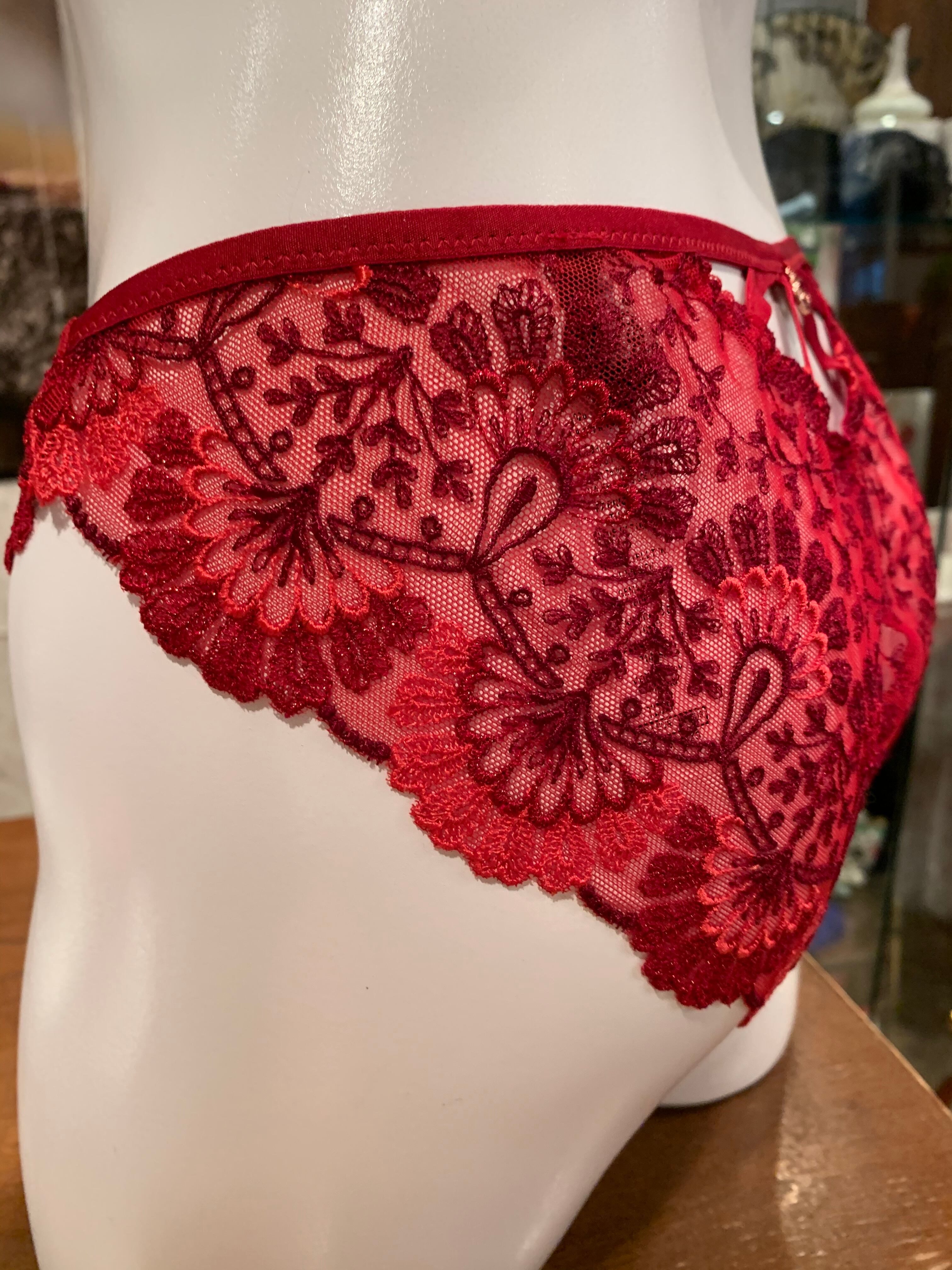 ハイカットで、快適な履き心地であると同時に魅惑的なビキニ。装飾的な刺繍がまるでタトゥーのように素肌に