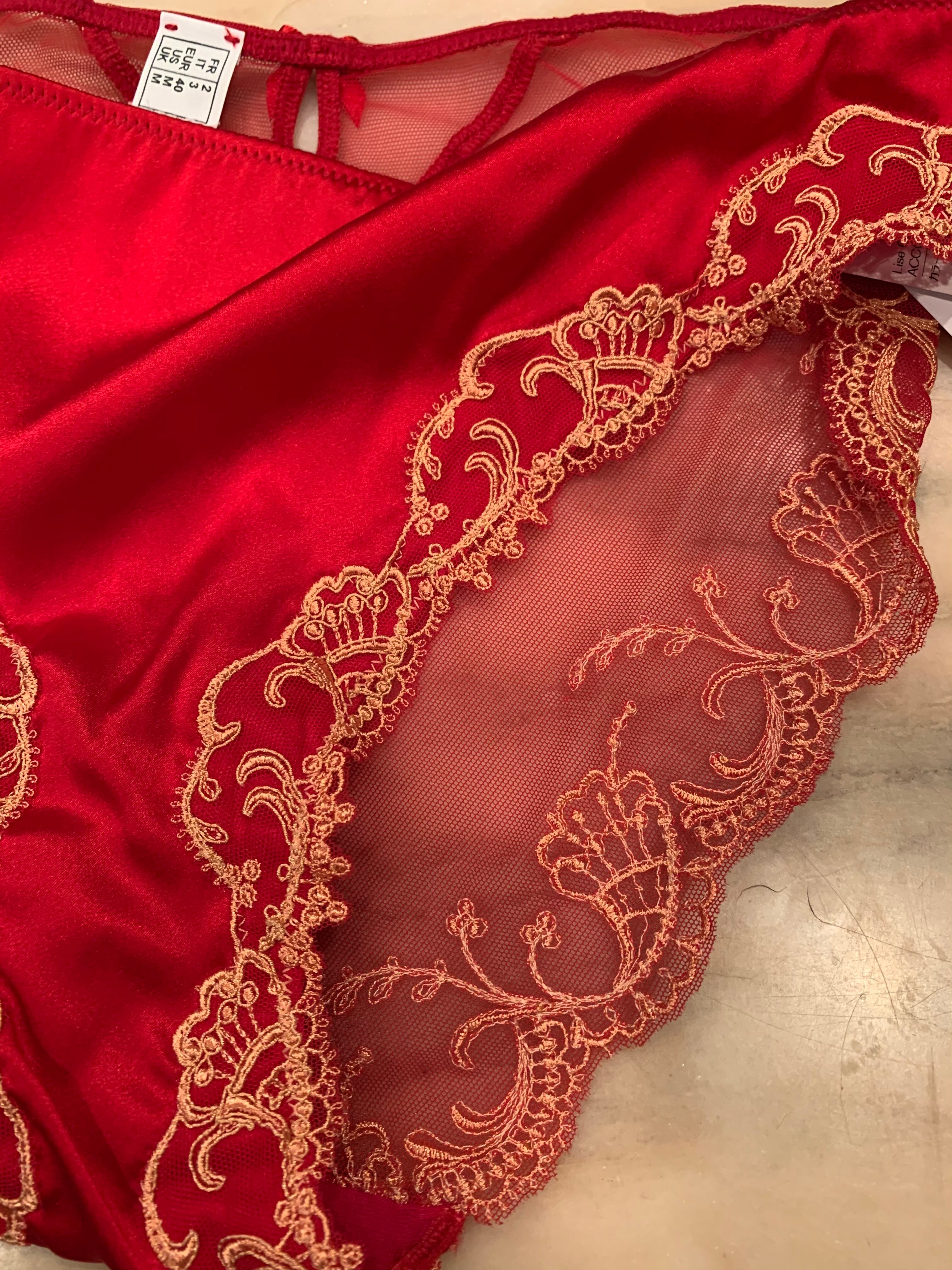 ♡上品なイタリアンショーツ。フロントはシンプルにシルクサテン地でクールに、バックは美しい透け感とレースを堪能。