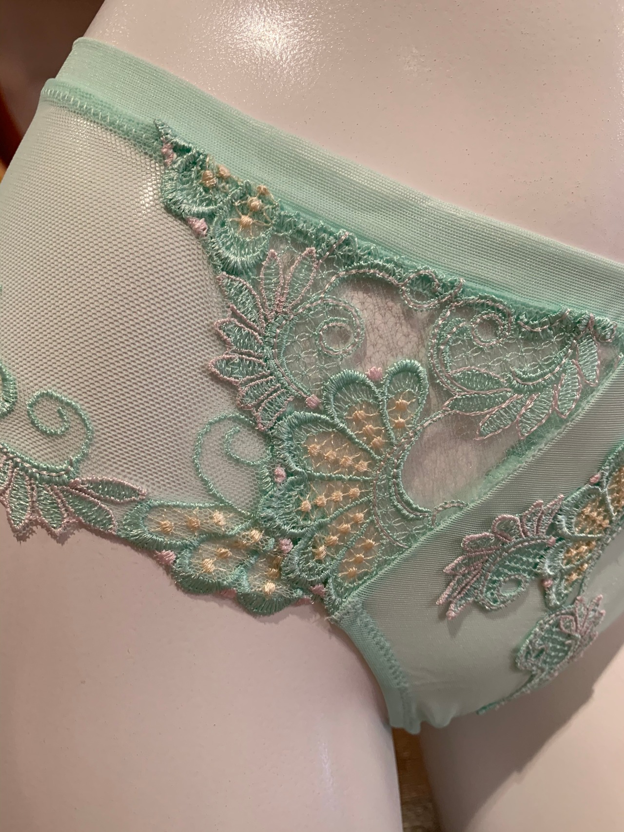 ♡セクシーなヒップハンガー。中央にはギュピールレースのモチーフ。大変美しい透け感です。