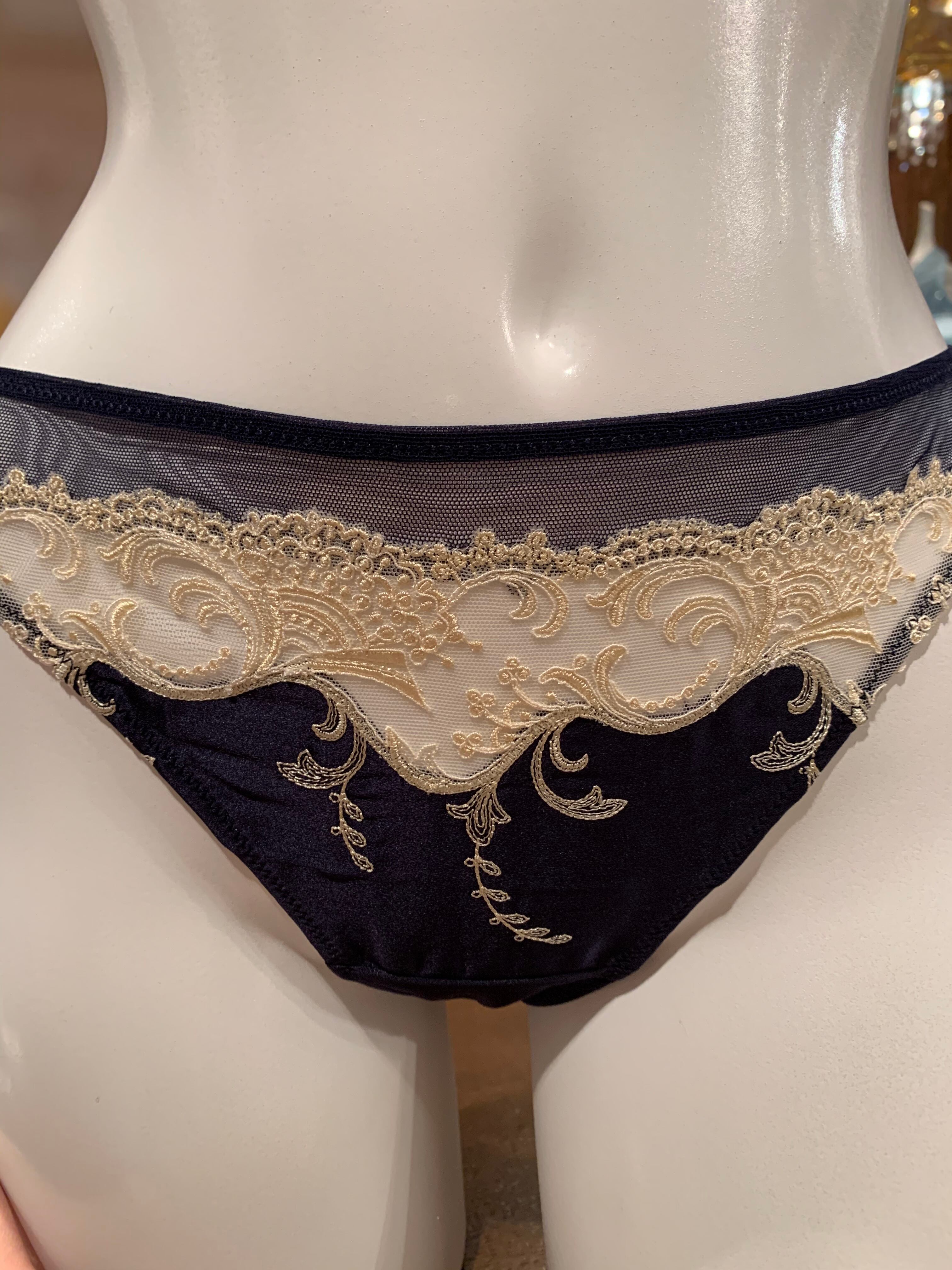 上品なタンガ。シルクサテン地と、モチーフの際立つチュール地の組み合わせ。バックスタイルはヘムの縫い目がなくラインが思いにひびきにくい。