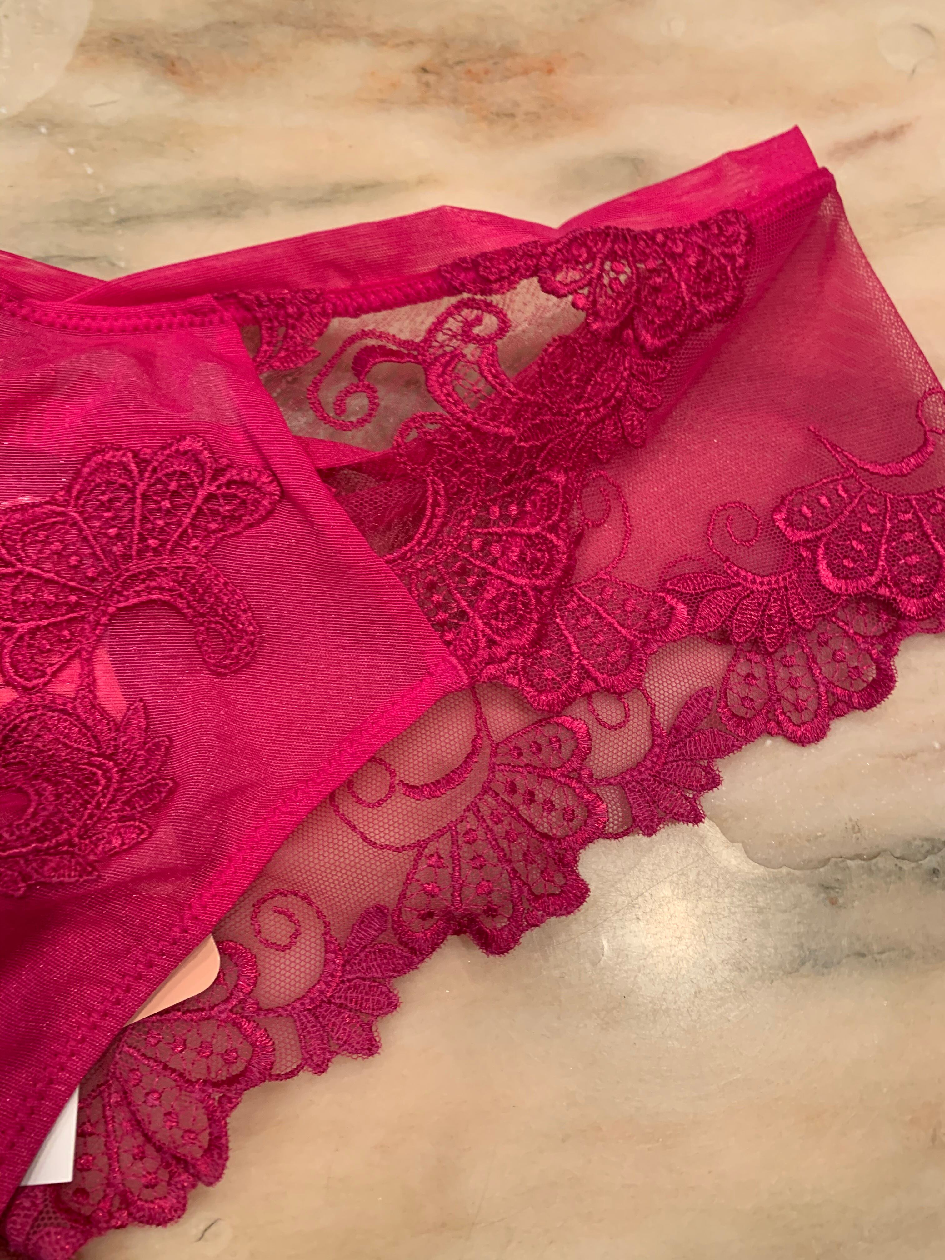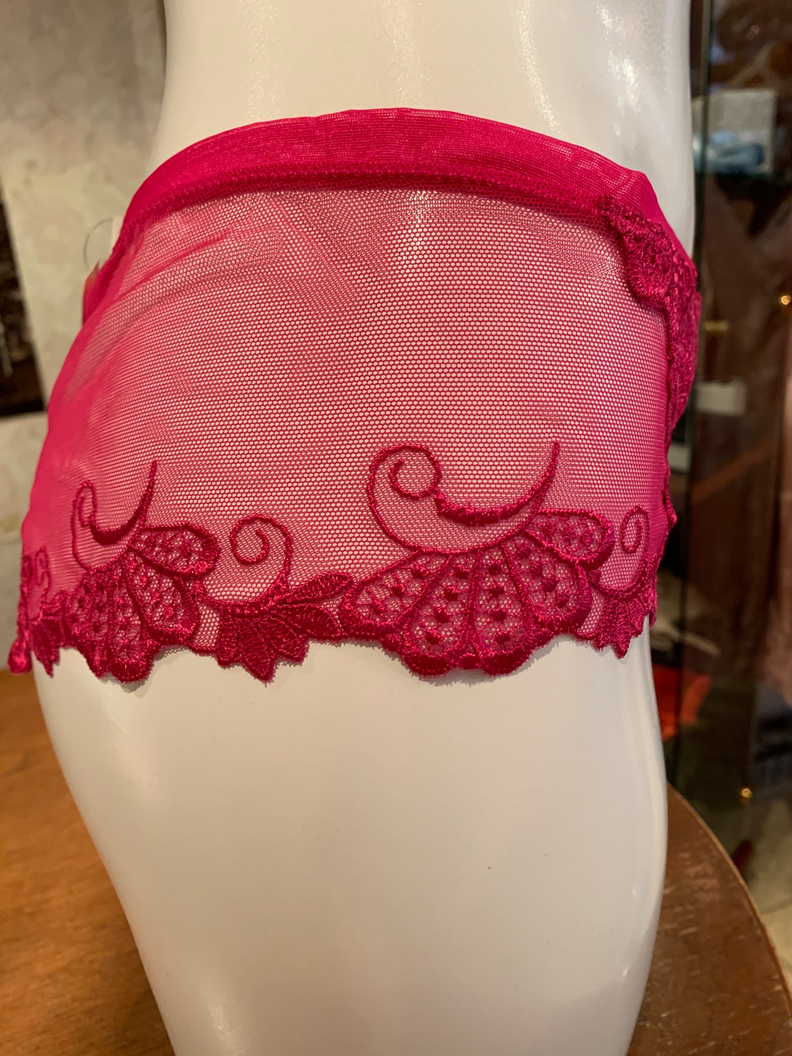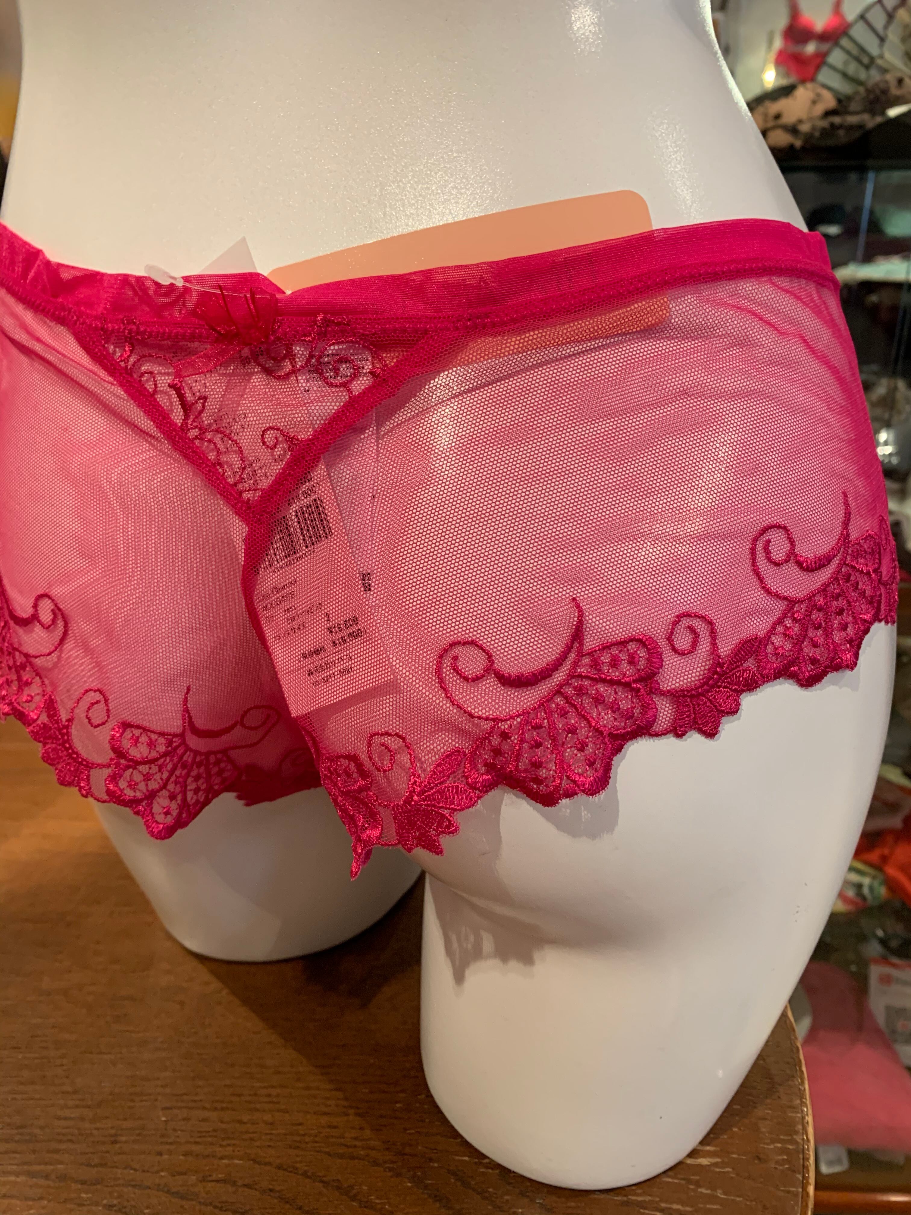 セクシーなヒップハンガー。中央にはギュピールレースのモチーフ。大変美しい透け感です。