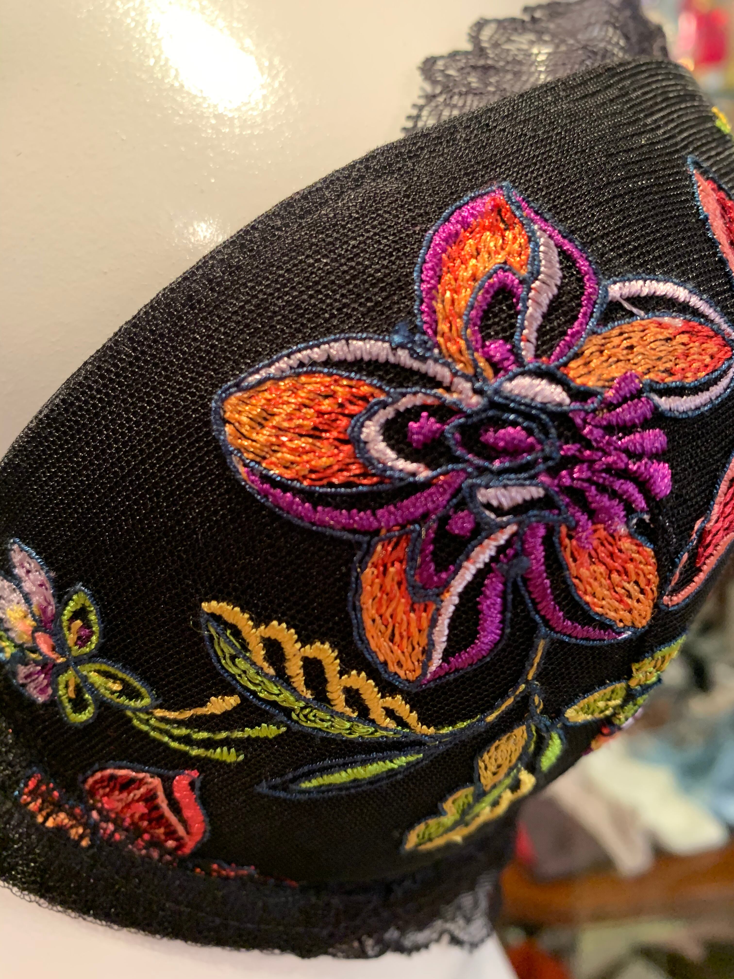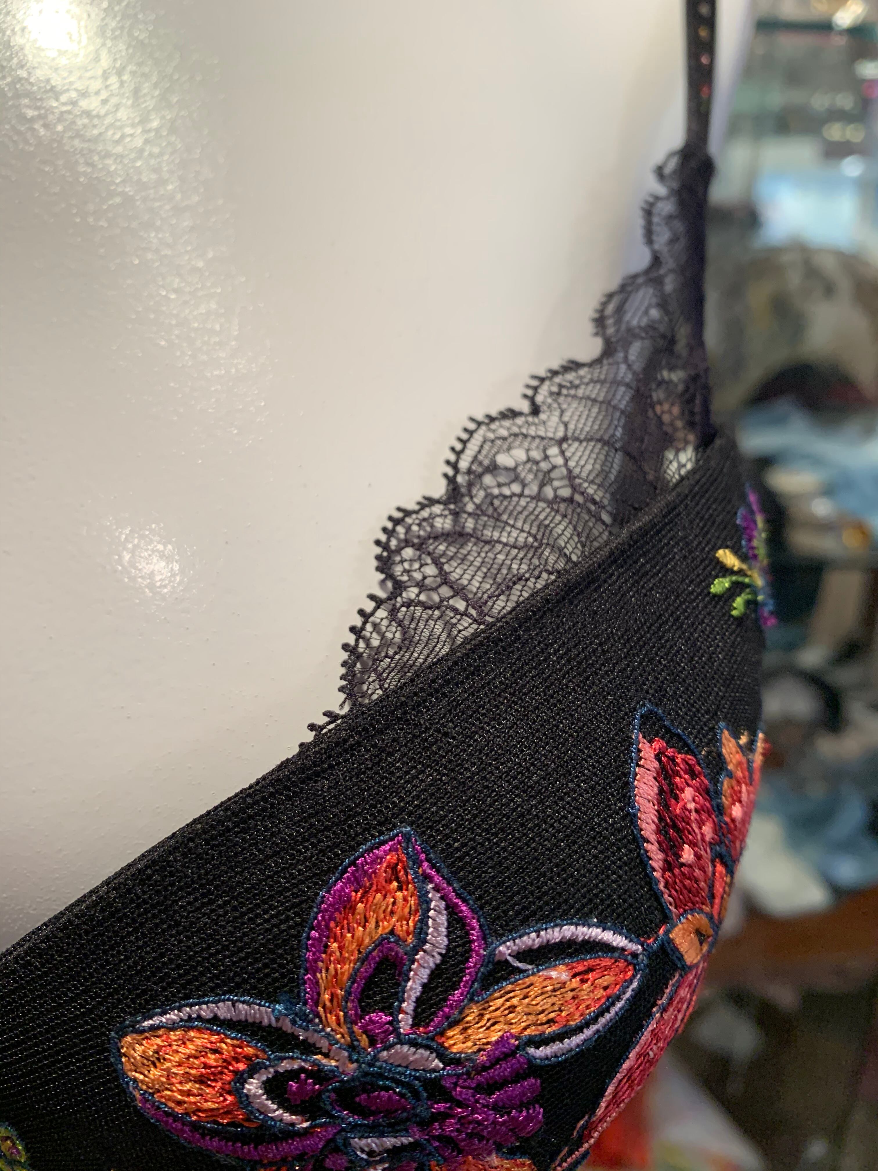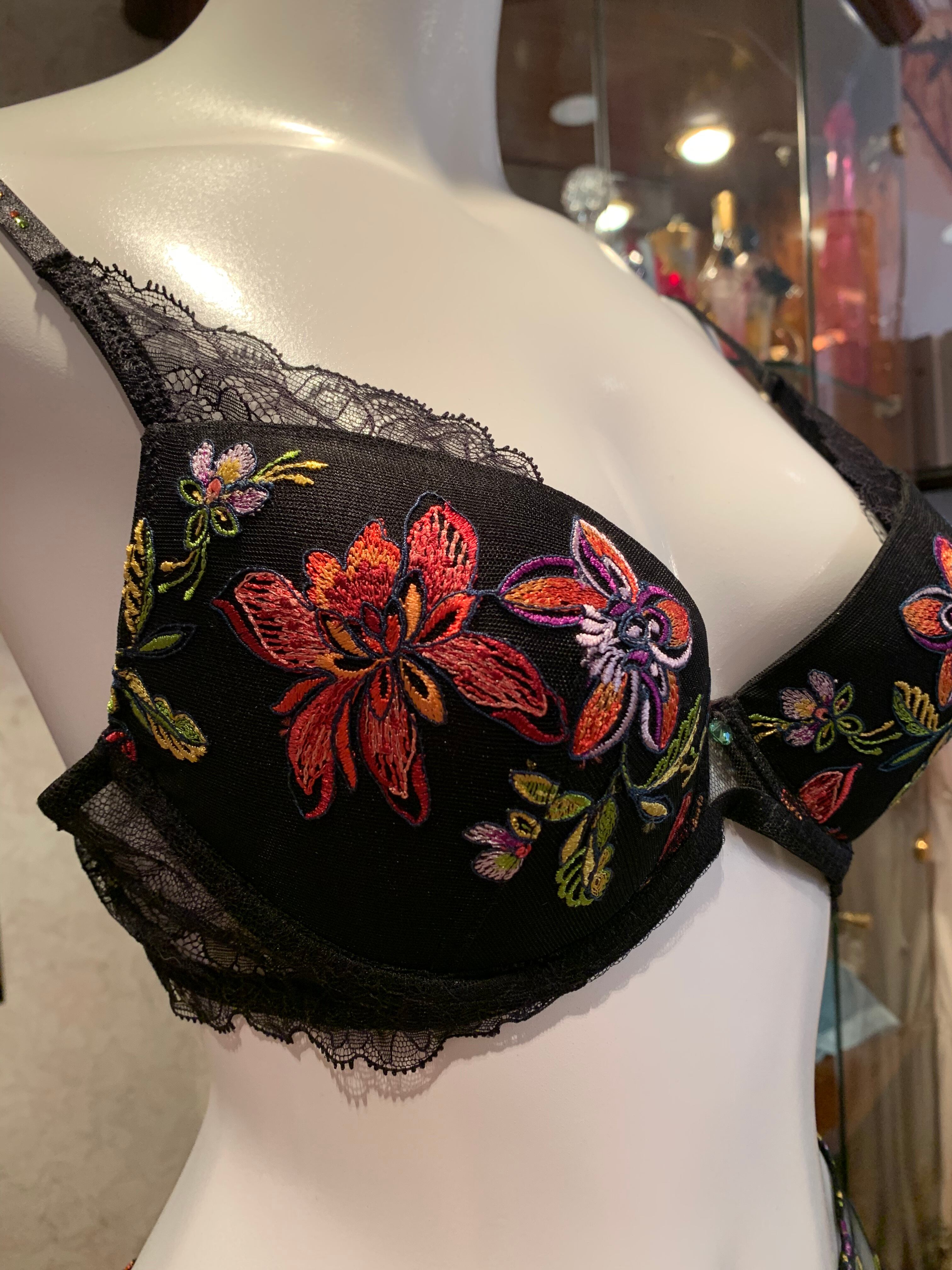 女性の自由への欲求を優先し、大胆で活気的なイメージを表現するべくこのシリーズを創り出しました。漆黒の背景に9色もの豪華なイタリアン刺繍によって陰影のある色彩豊かな花々が咲き乱れ、シルエットをより官能的な表情に昇華させます。