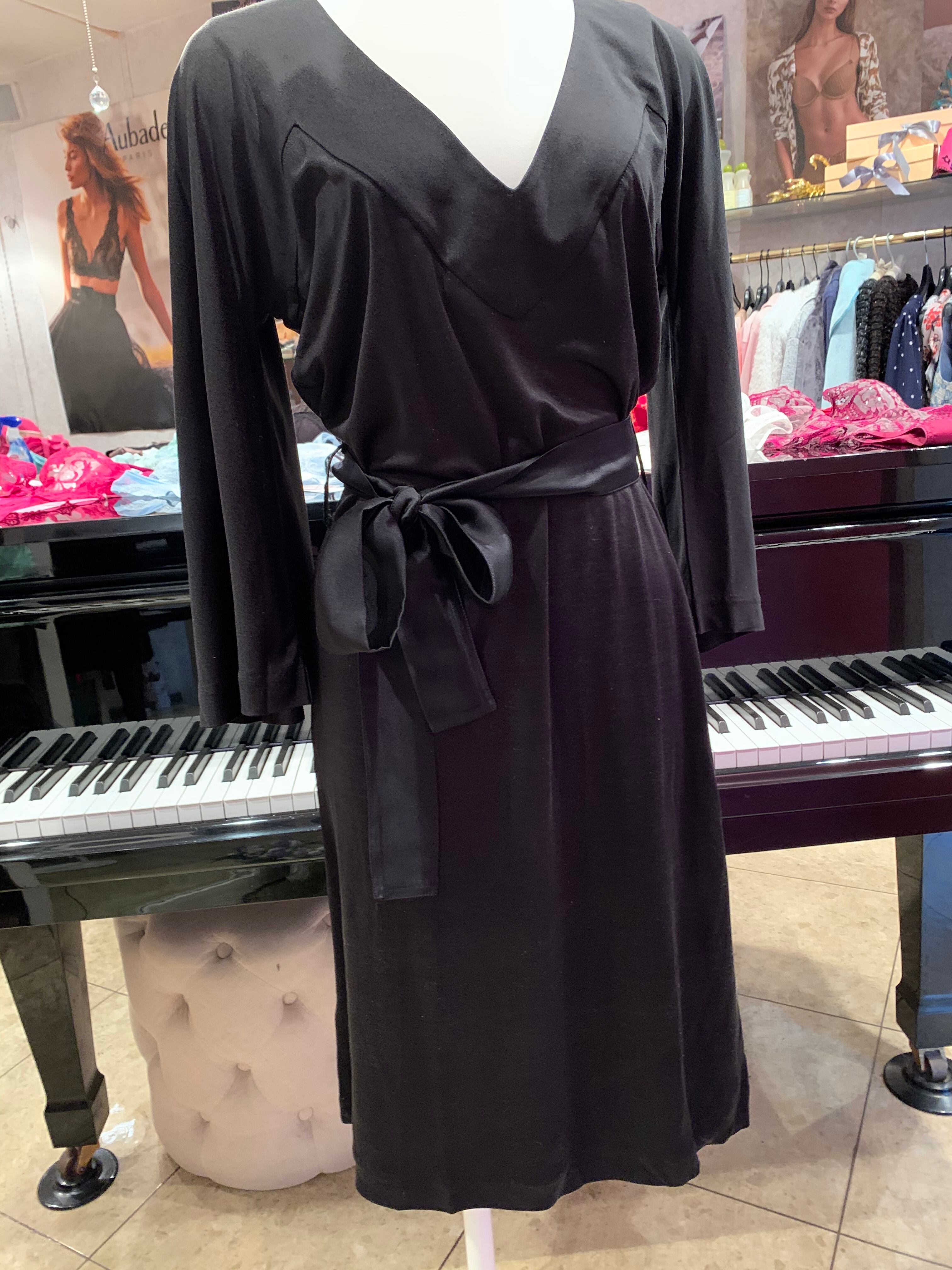 ウエストラインはシルクサテンのリボン飾り。