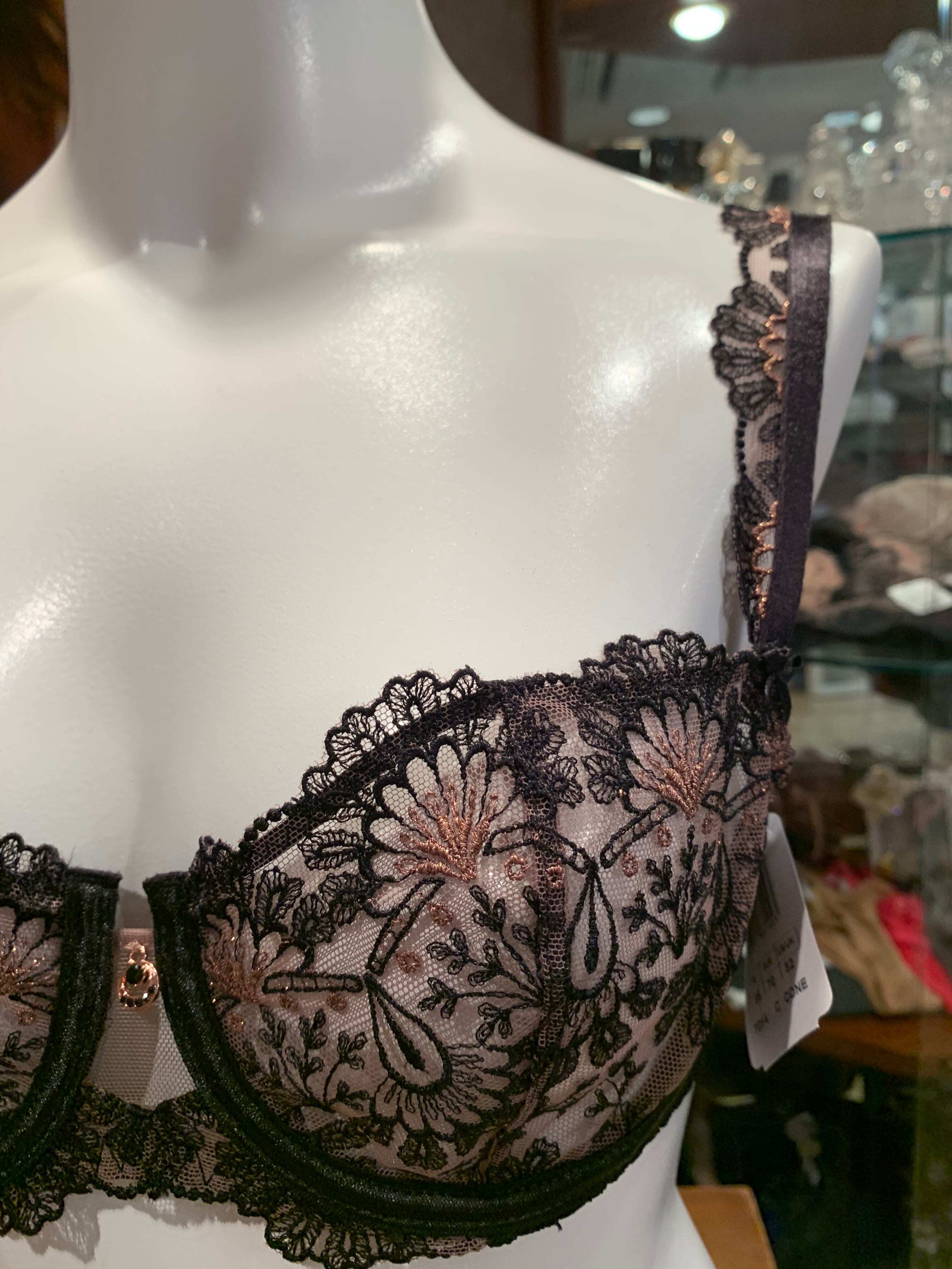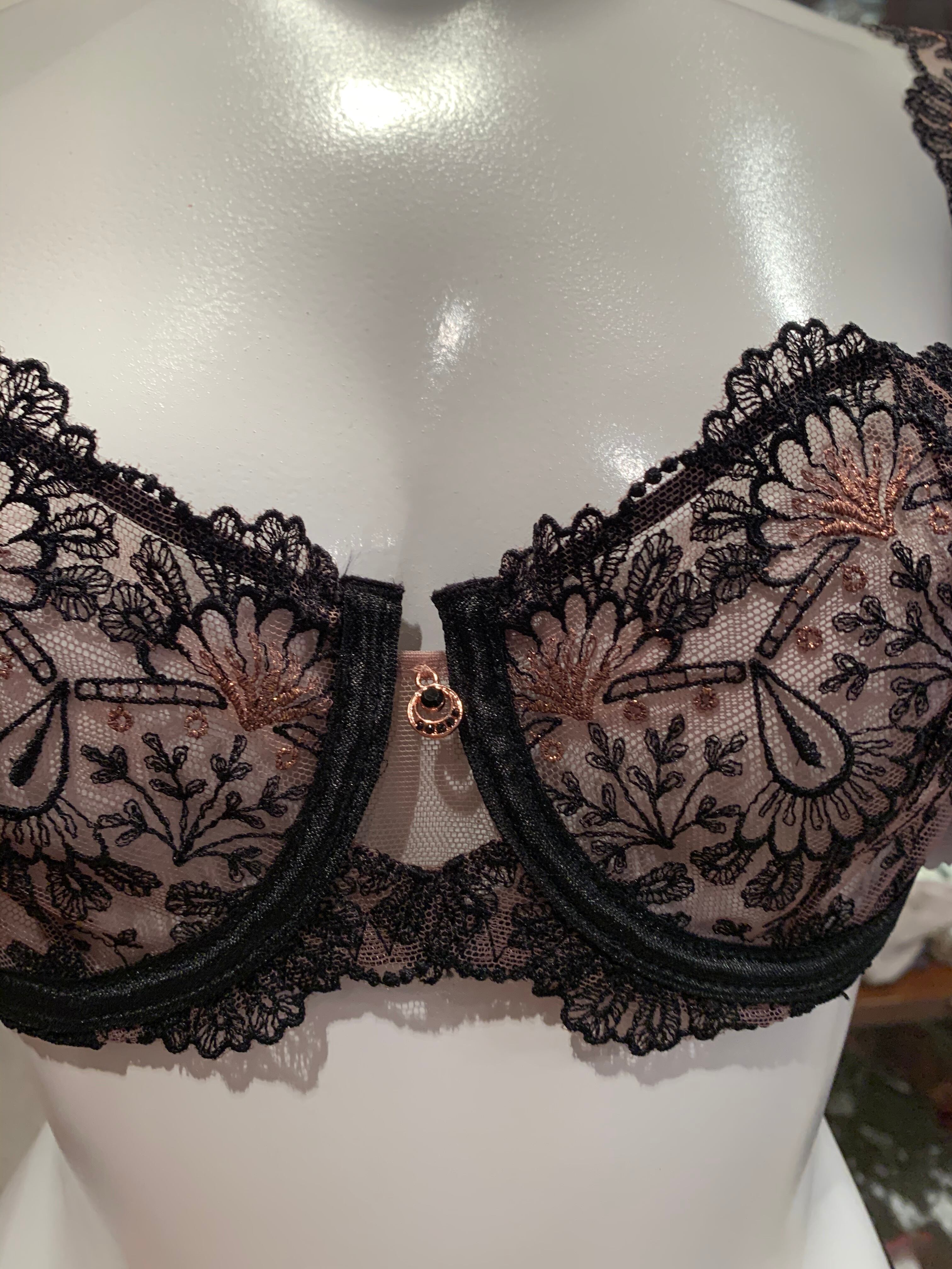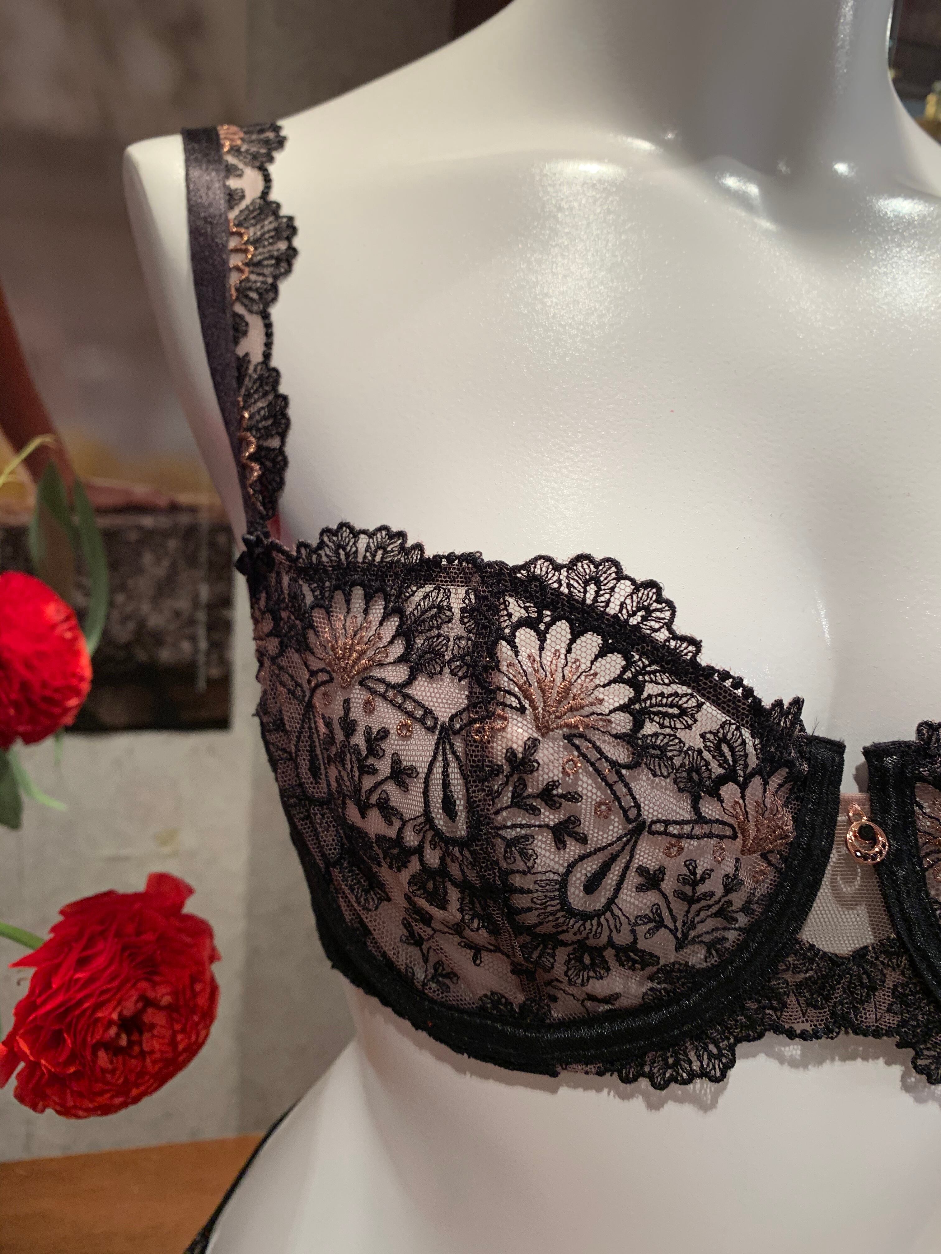 ♡深くセクシーな谷間を演出する、ダブルパテッドブラ。装飾的な刺繍が肌を飾り、タトゥーを連想させます。