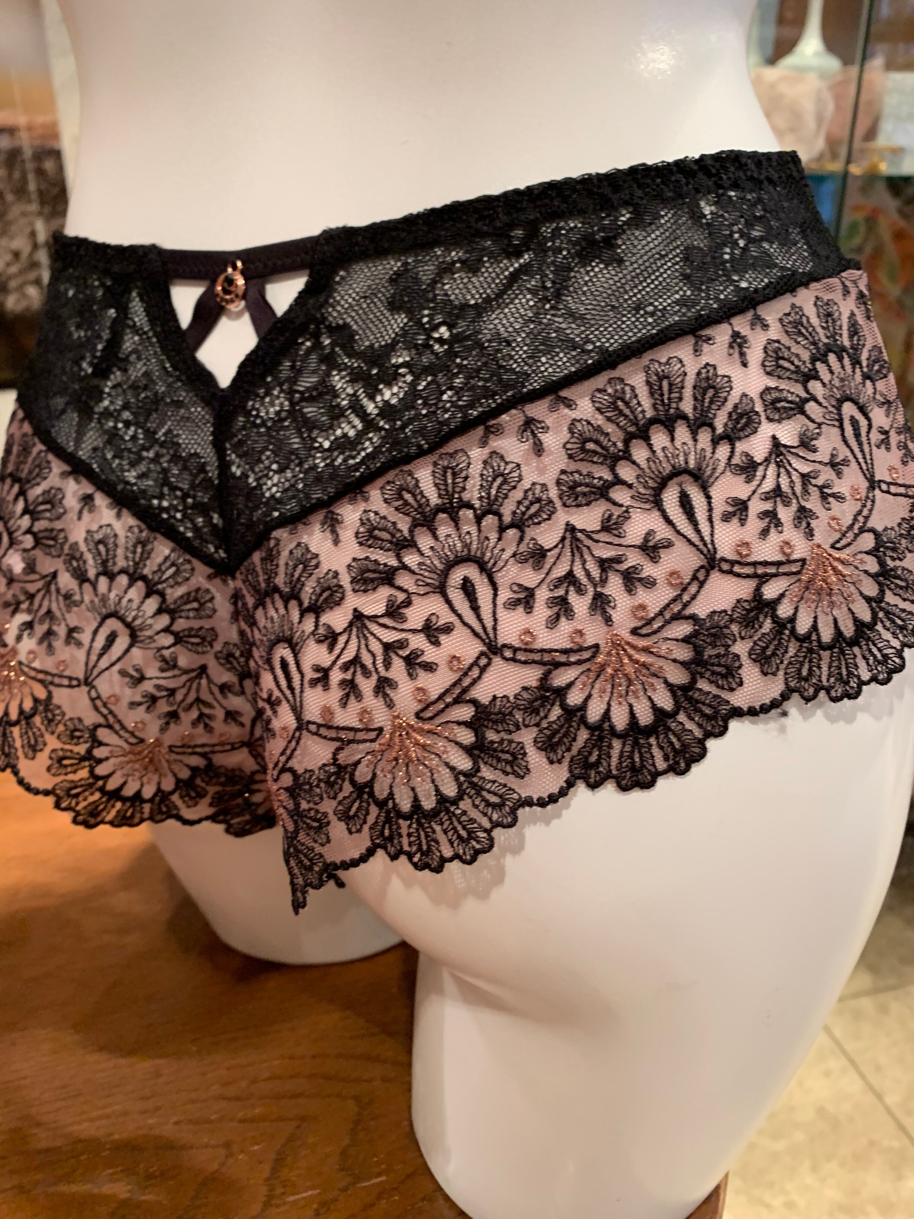 ♡アート・オブ・インクコレクションにヘルシーな色香をもたらすボクサー。ヒップ全体にタトゥーの様な装飾的な刺繍が広がります。ストレートラインが、モダンで現代的。