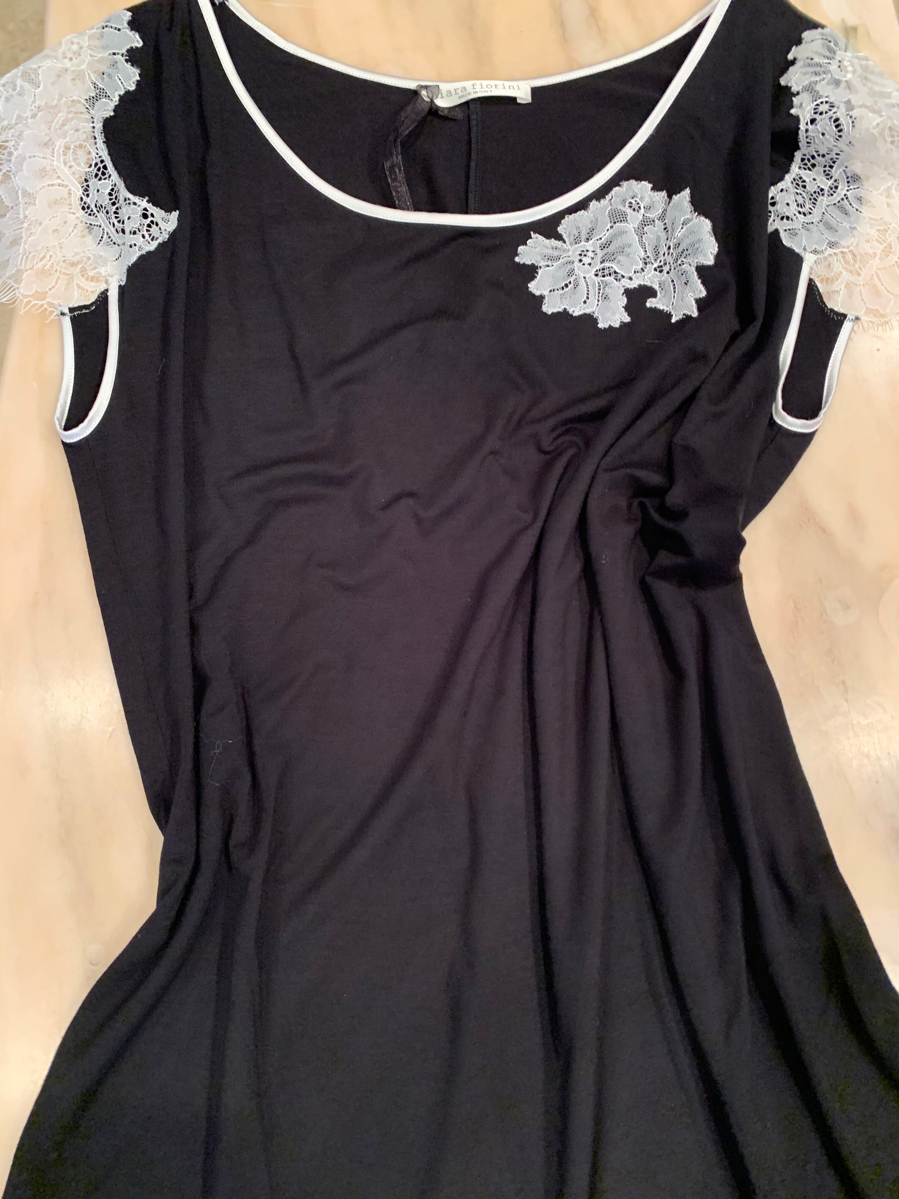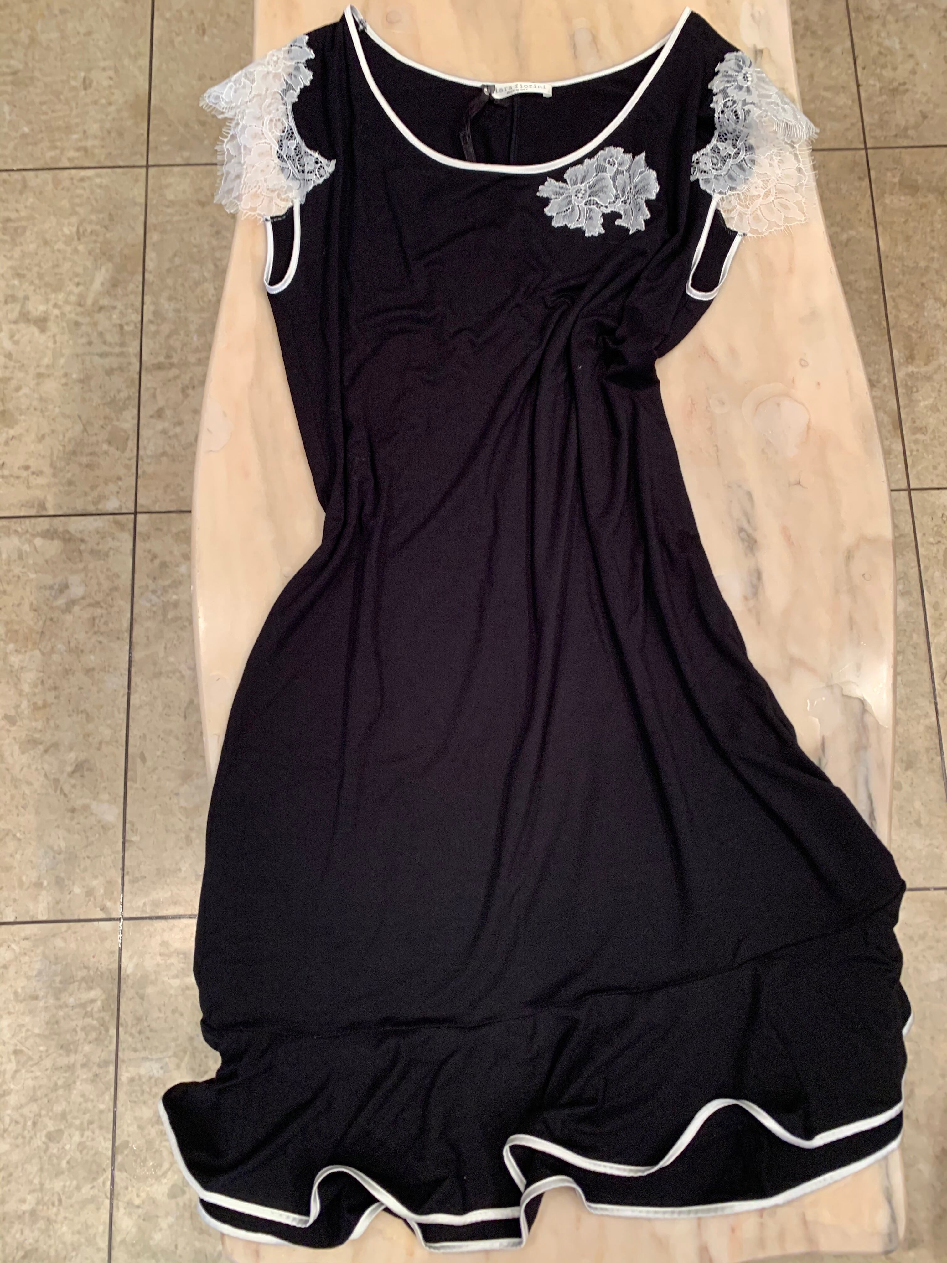 ♡ブラックに真っ白のトリミング、美しいレース、裾のフレアがとてもエレガントなルームウェアです。