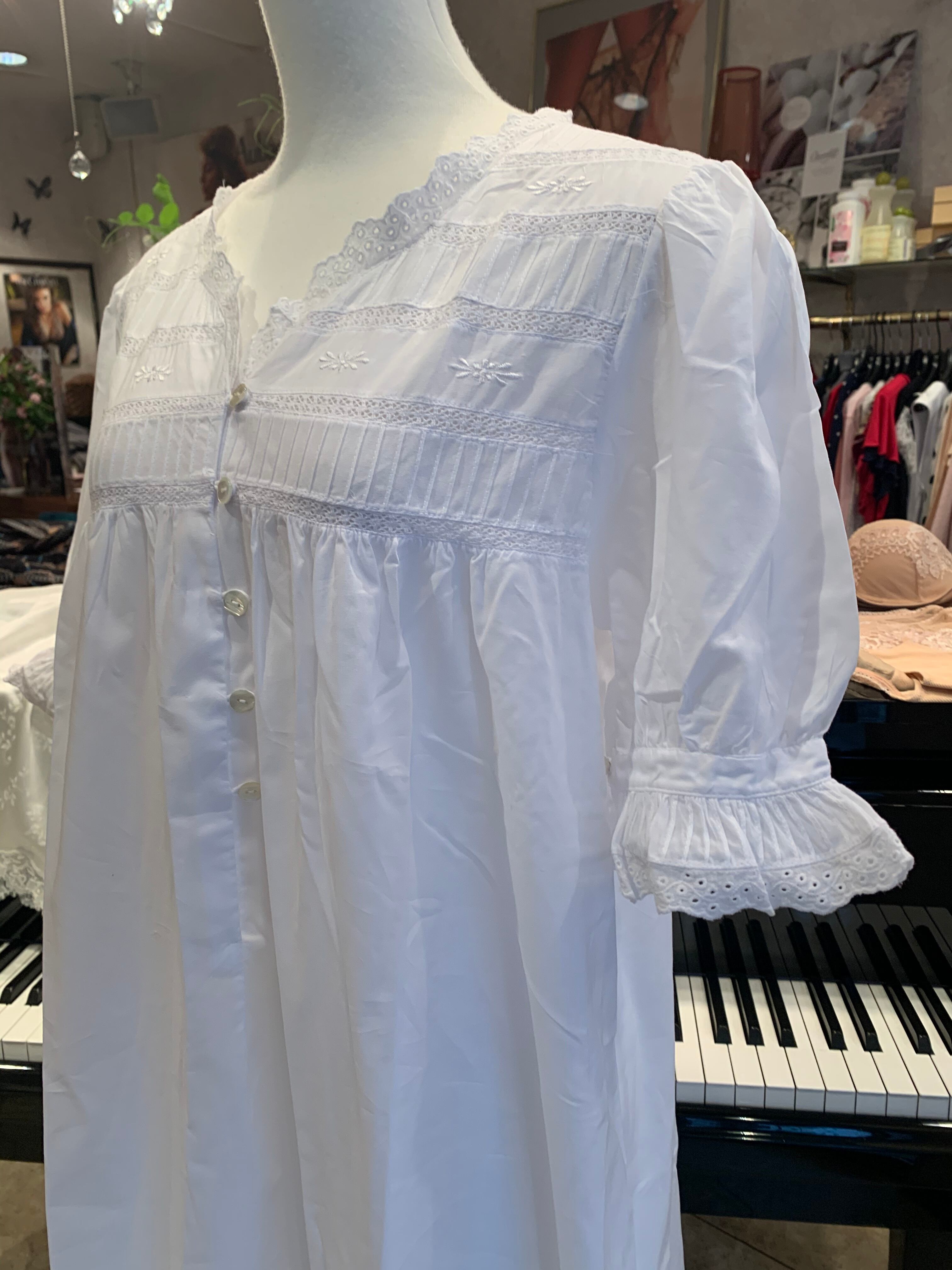 ♡ピュアコットン100%のナイトウェアブランドのティア。真っ白なロマンティックなデザインと上質なコットンの肌触りが心地よいナイティです。