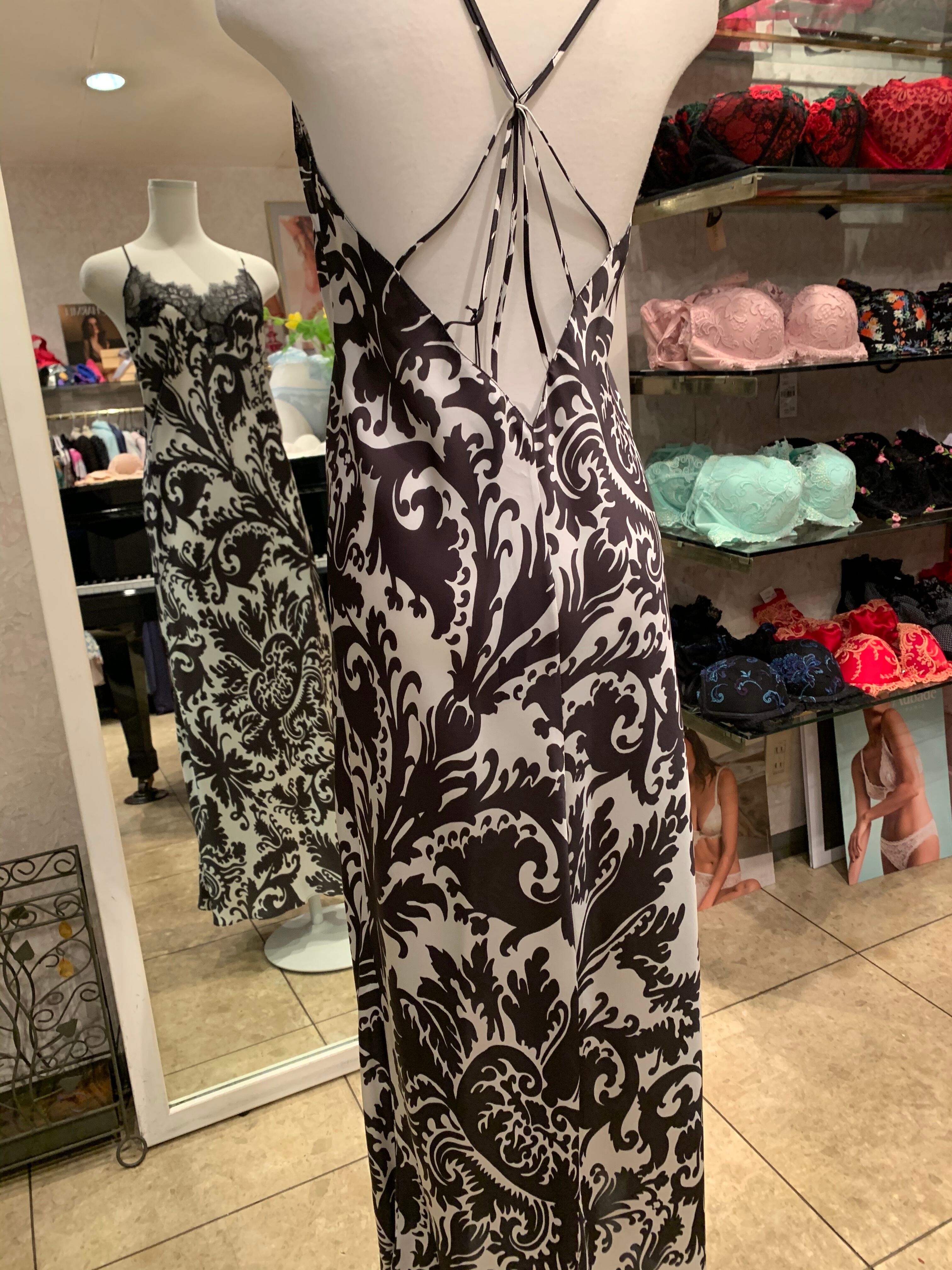 ♡プリントのデザインに目を奪われるロマンティックなロングスリップ&ナイトドレスです。