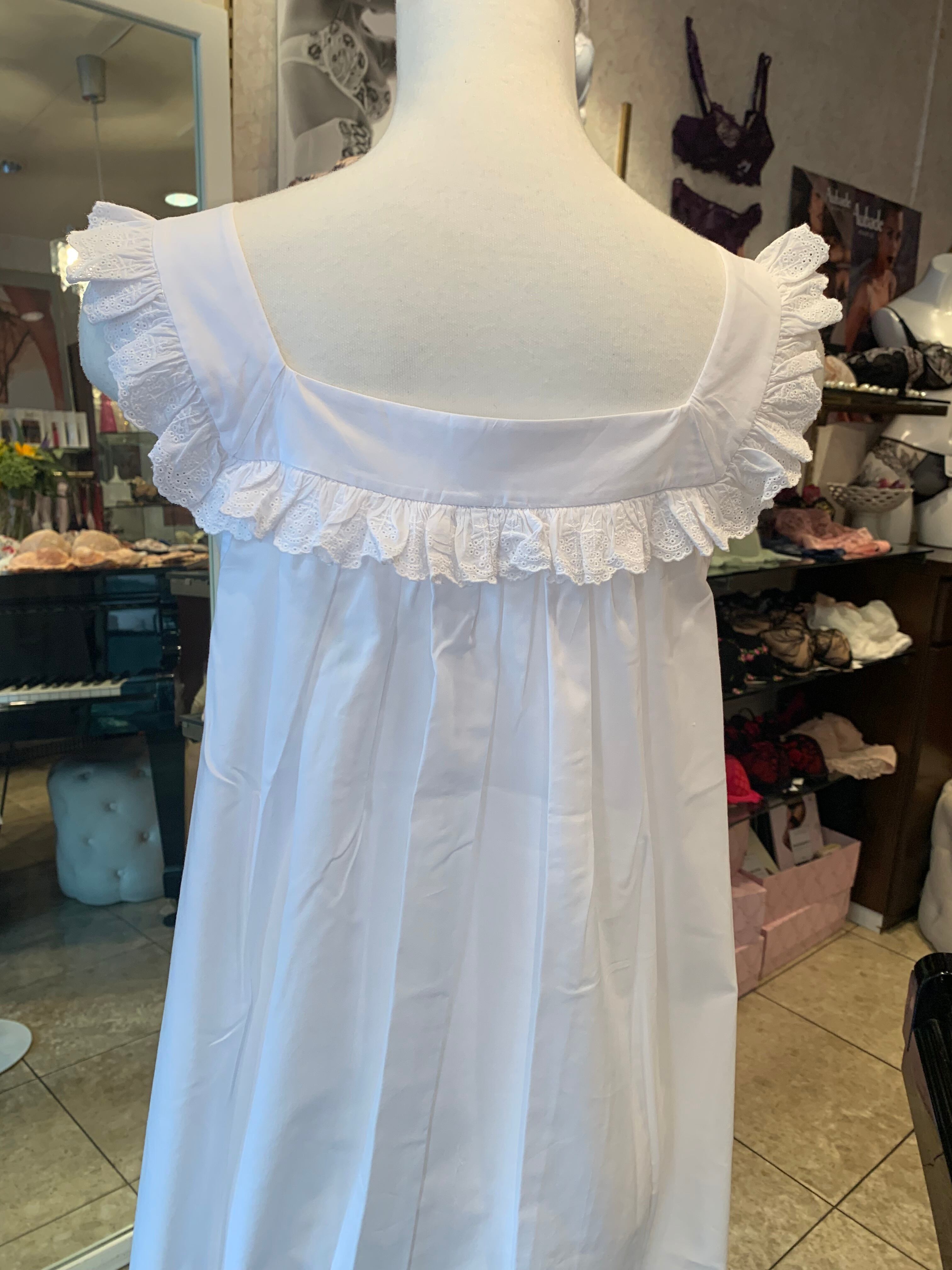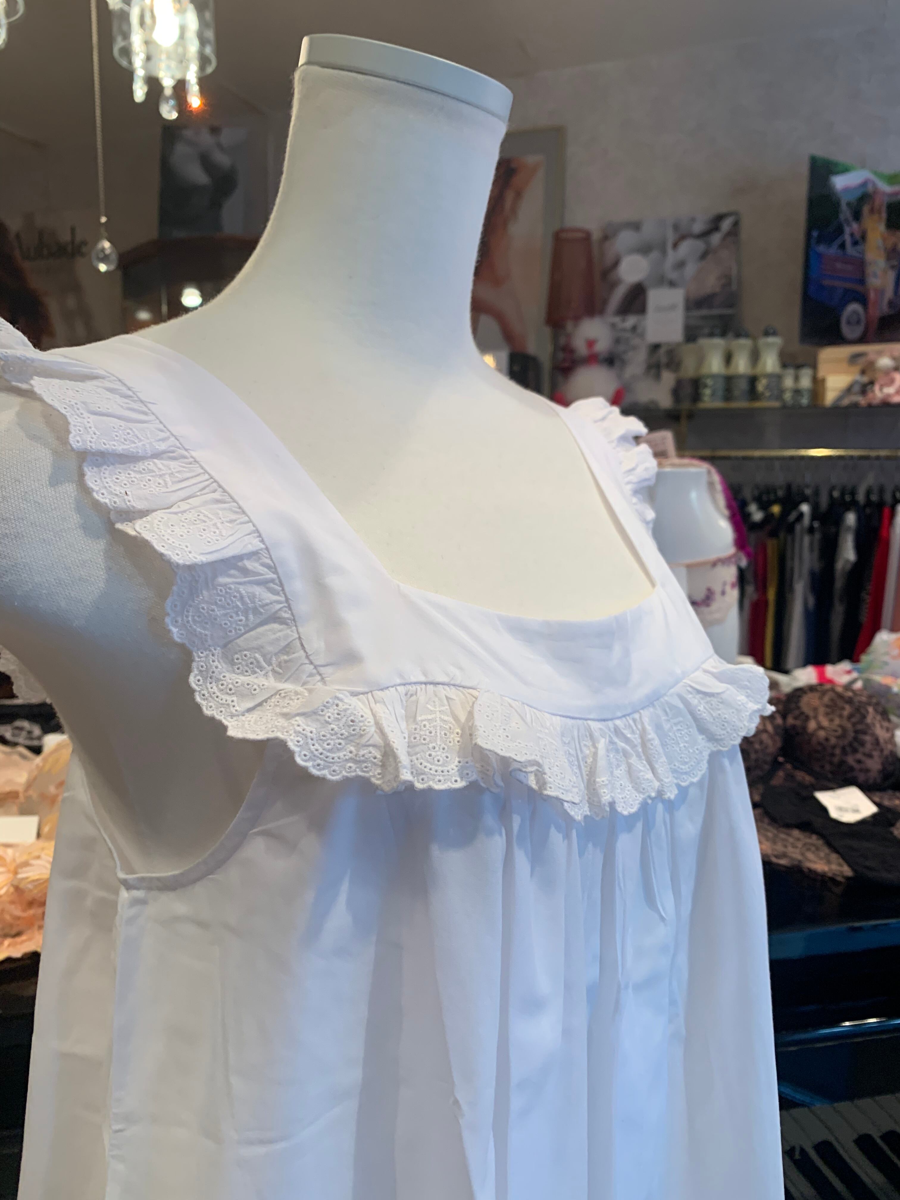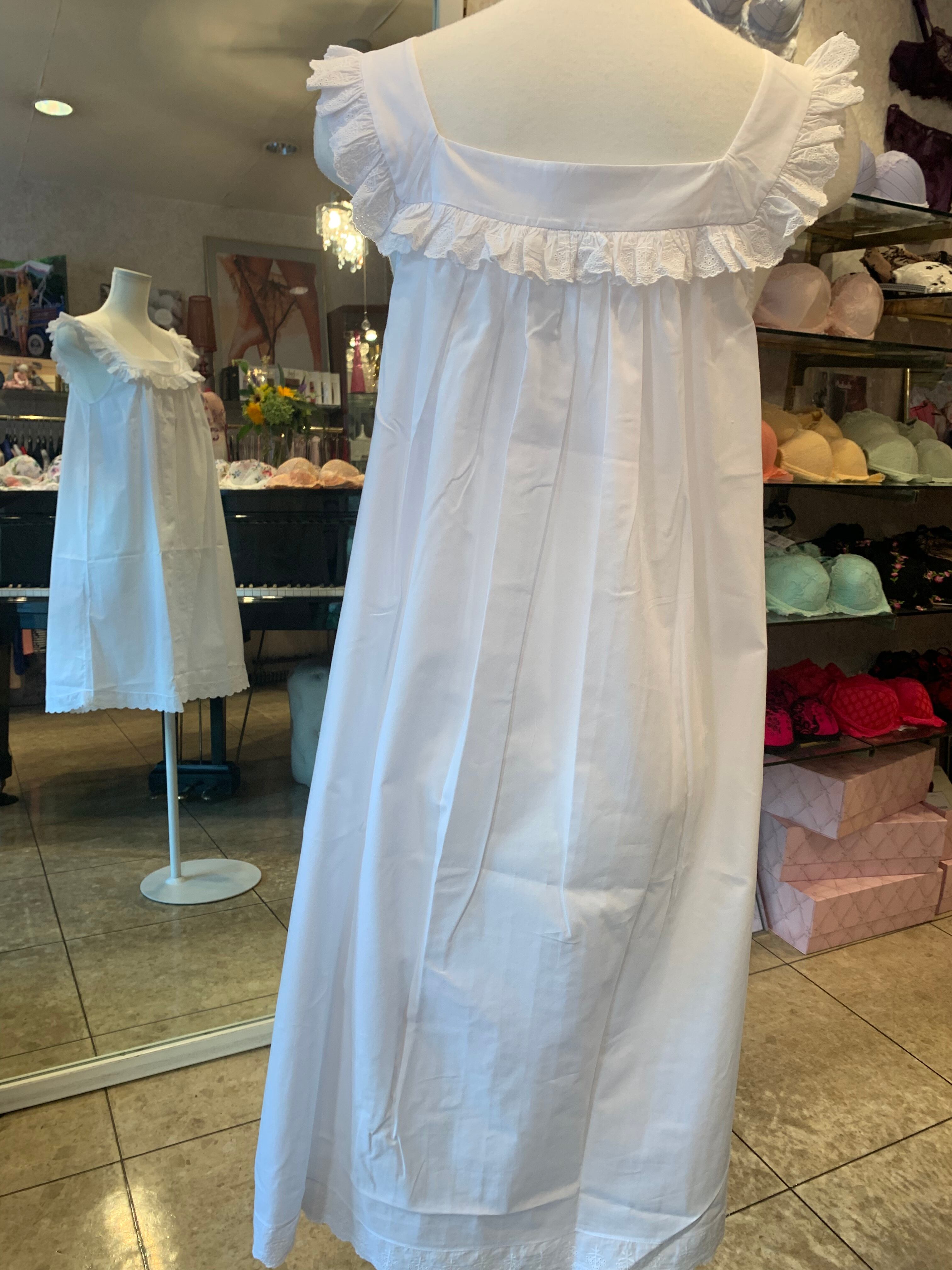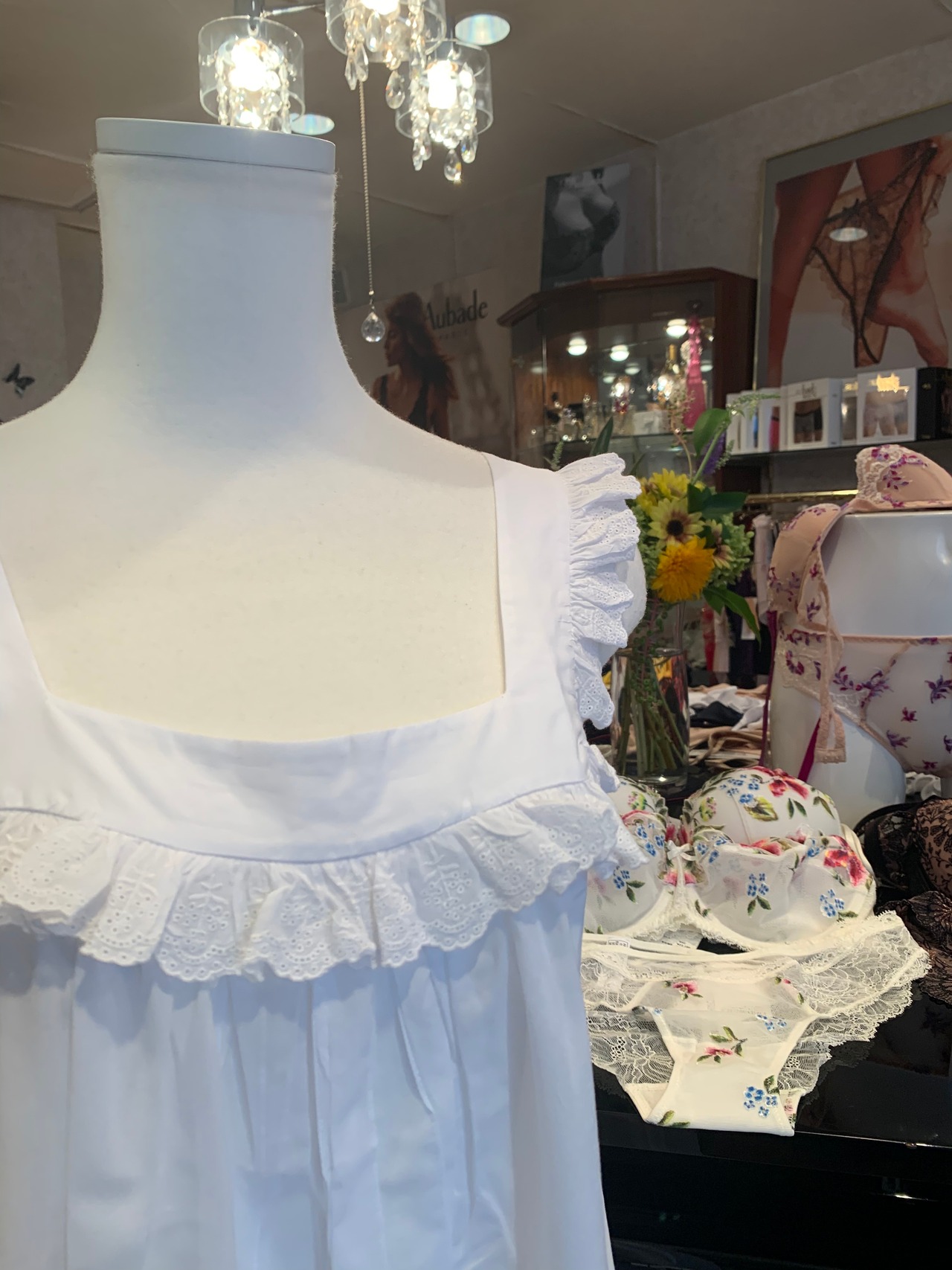 ノースリーブでデコルテラインから肩周りに清楚なフリルが施されています。