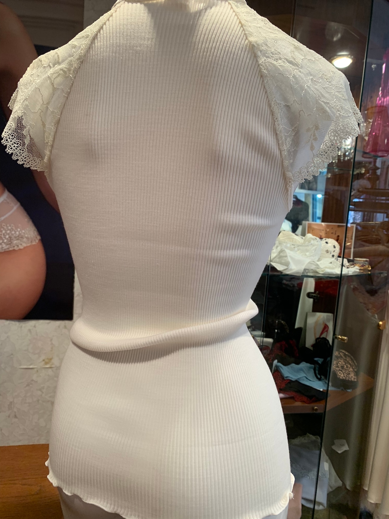 天然素材のリブ素材でかつ両脇に縫い目が無いホールガーメンドの仕上げにより身体のラインに自然にフィットするのが特徴です。