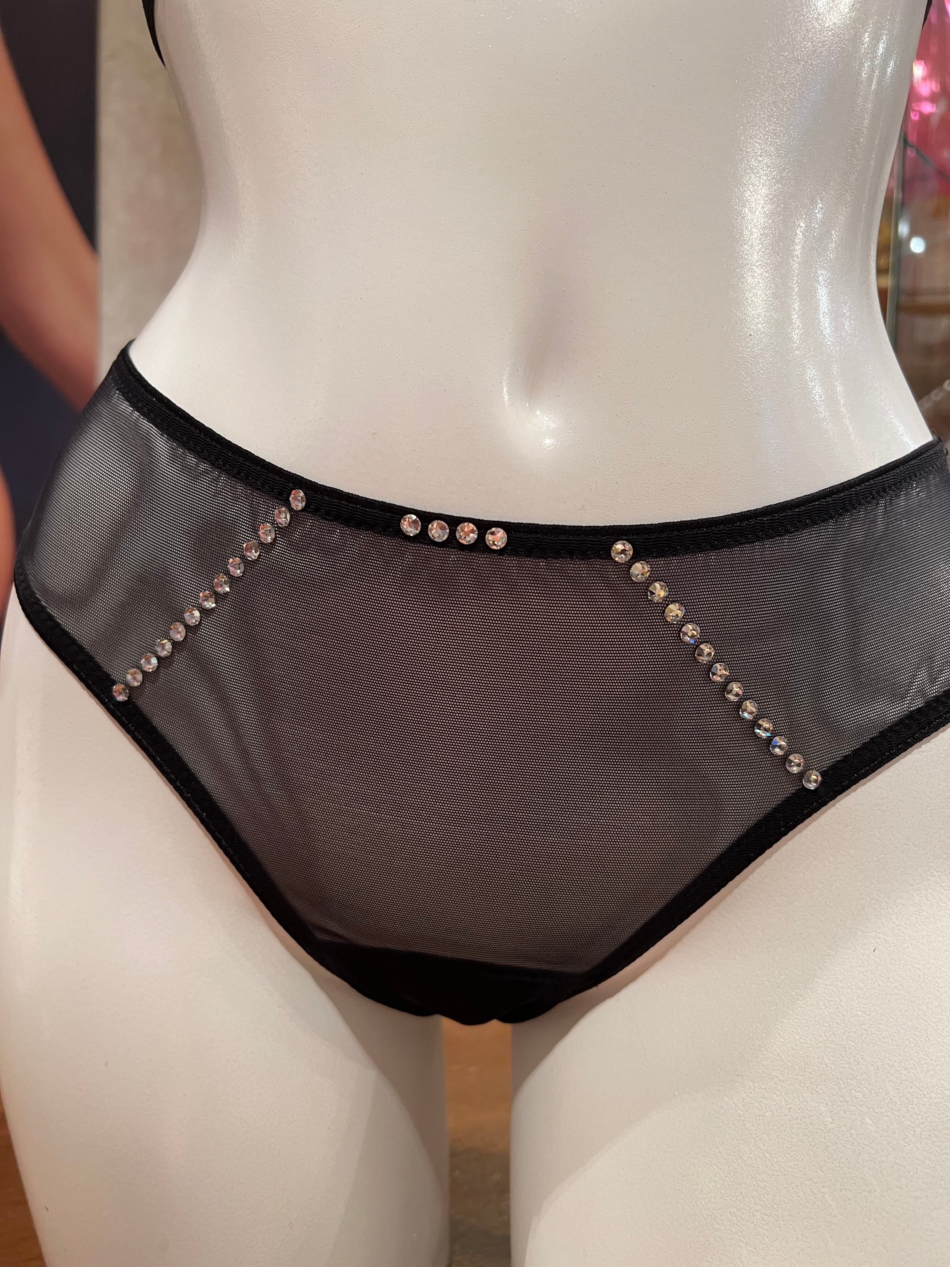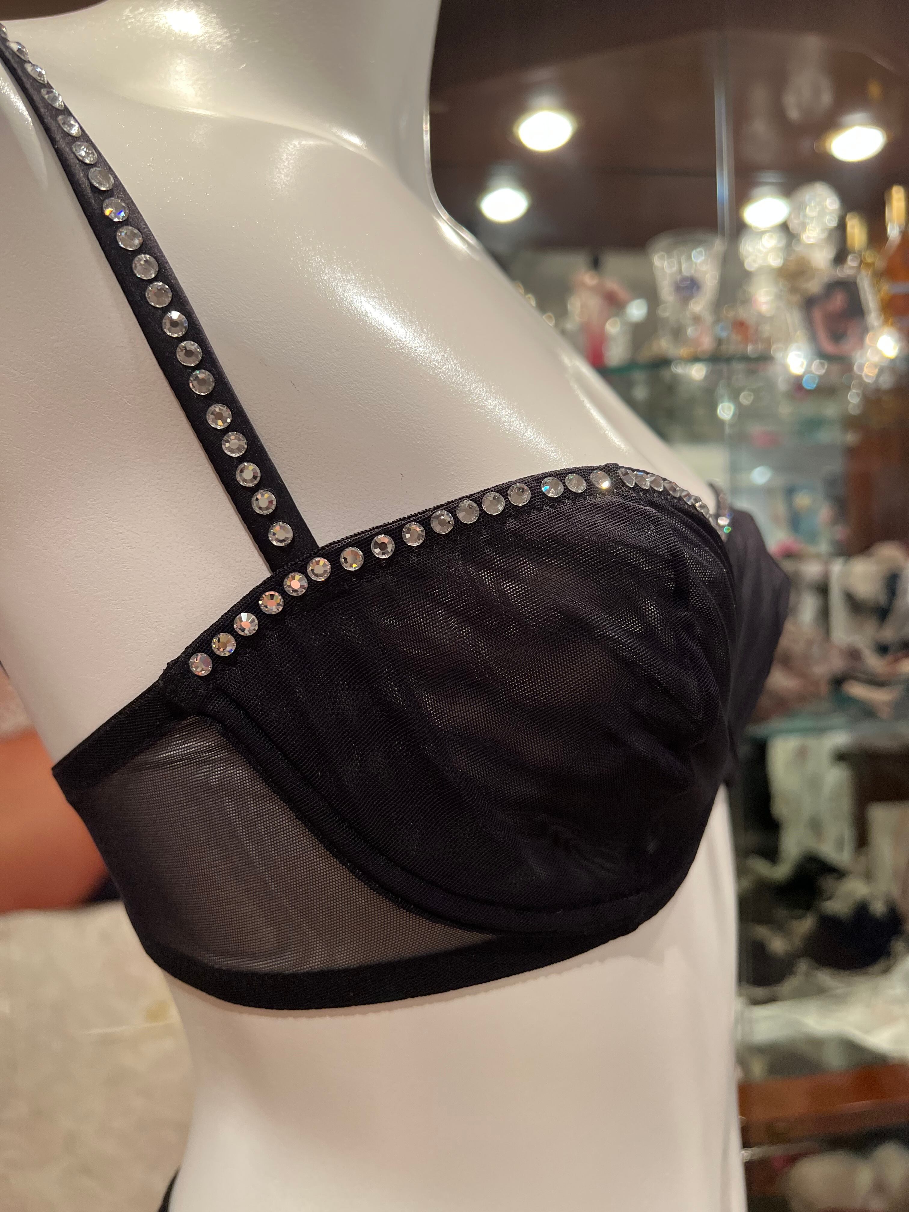 上質なチュールレースにキラキラ輝くようにラインストーンが付いています。アウターから覗くと今まで出会ったことの無いランジェリーのラグジュアリー感を表現する事ができます。