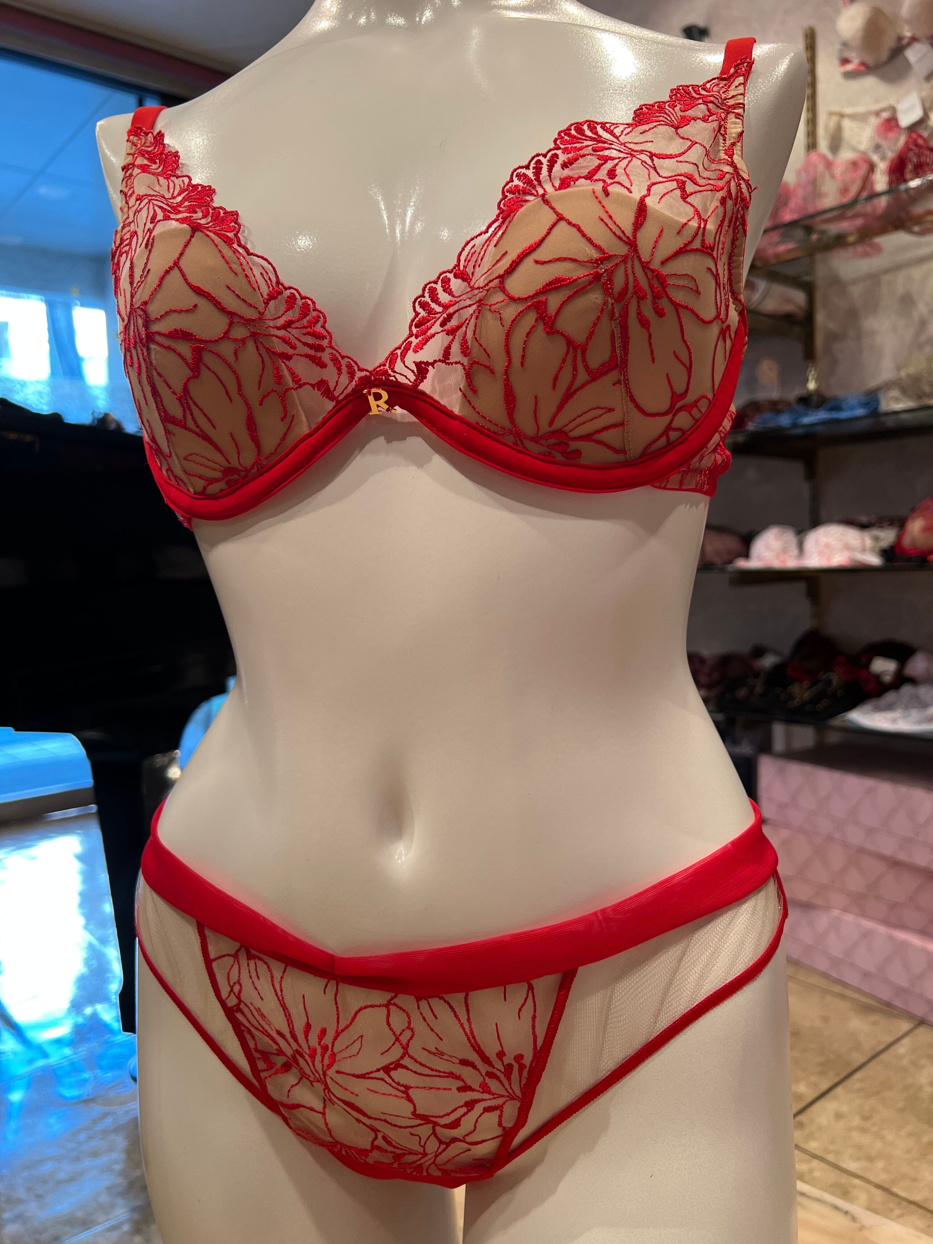 ♡透明感のある繊細なチュールに大輪の花が刺繍されていて大人っぽくエレガントな仕上がりです。びっくりする柔らかい手触りです。リトラッティを代表する寄せるタイプのヌードカラーパッドが裏打ちされています。