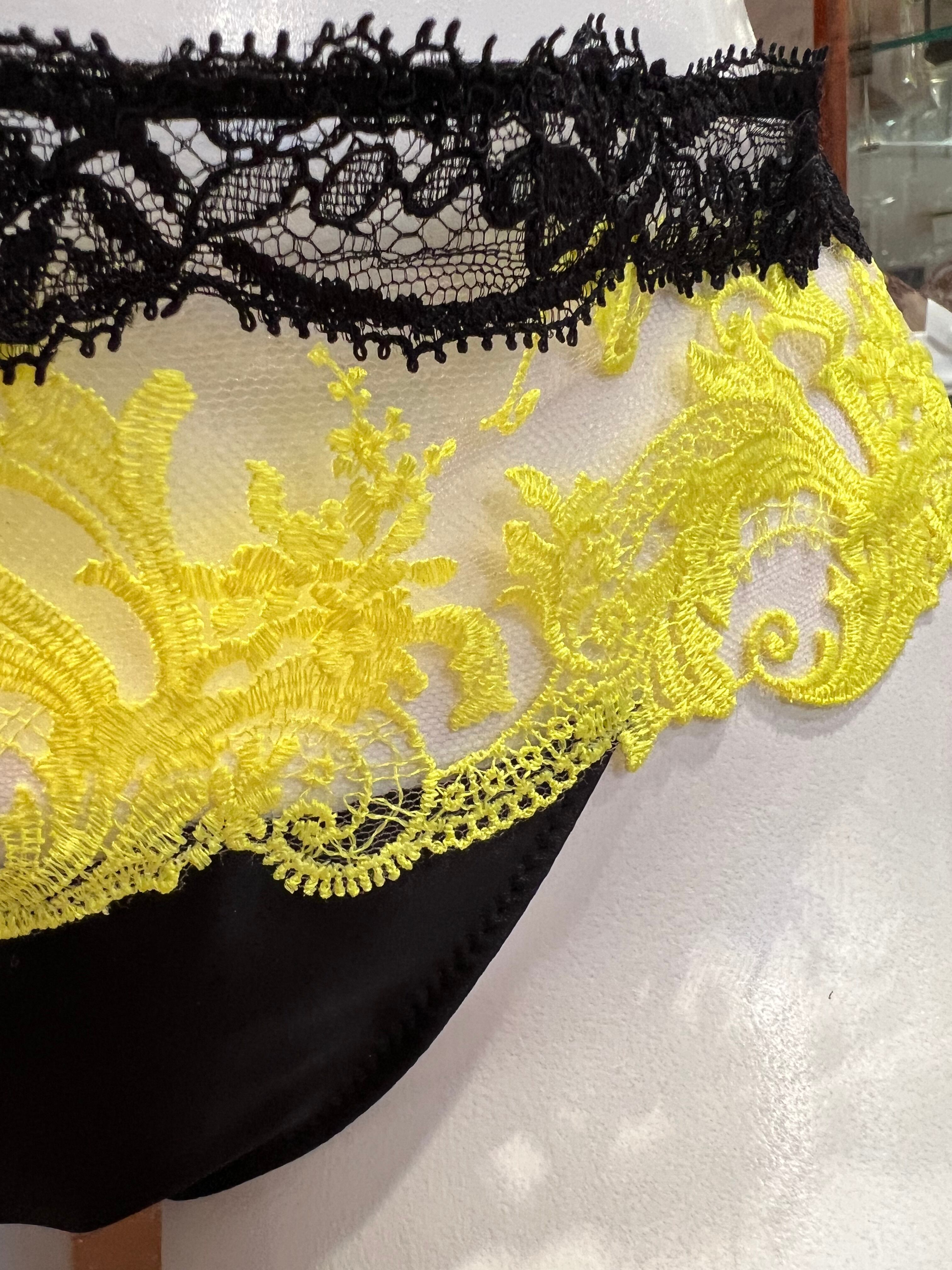 ♡2022年AW collection です。とても手の込んだ仕上がりです。シルクの身生地にリバーレース。ことの他美しいカラーリング。ネオンイエローが新鮮です。三角ブラはとても着け心地が良く最近、大人気を頂いております。インポートランジェリーをお召しになるのはやはり一枚ものをお勧めいたします。