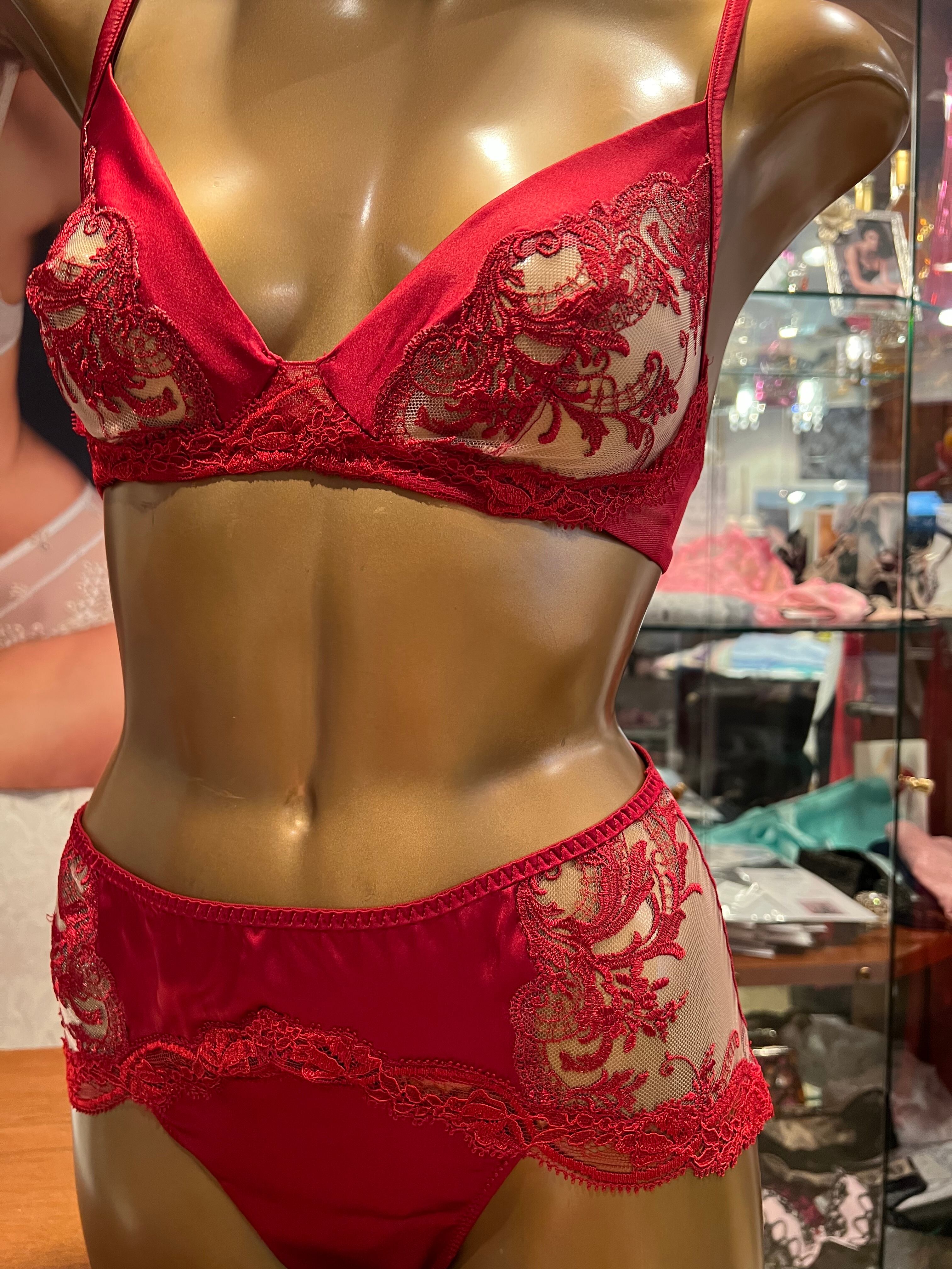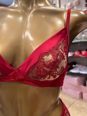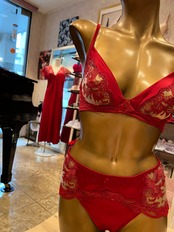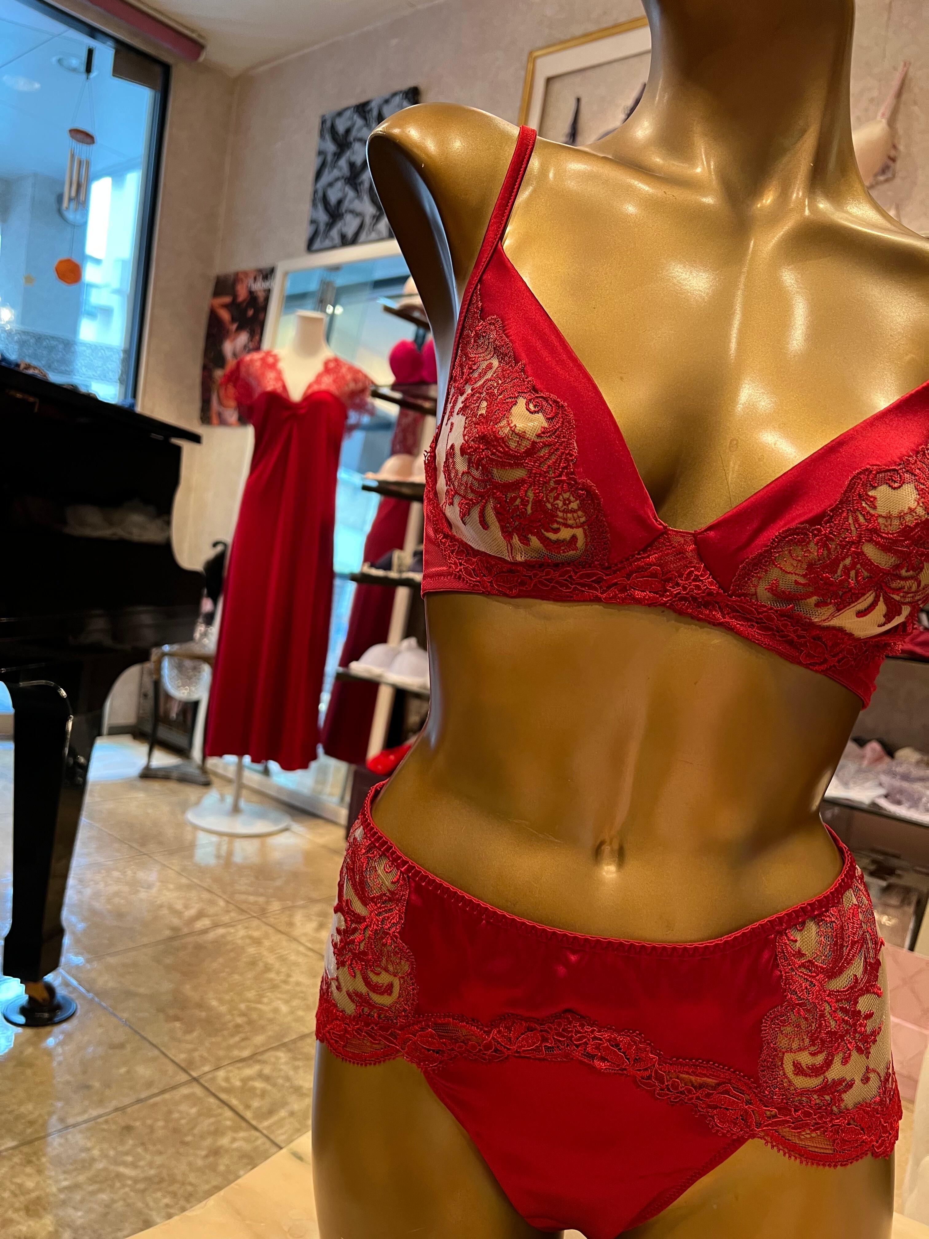 ♡バルセロナのパッションが伝わる逸品です。最高のシルクとリバーレースのコラボレーションは圧巻の美しさです。こっくり深い赤です。