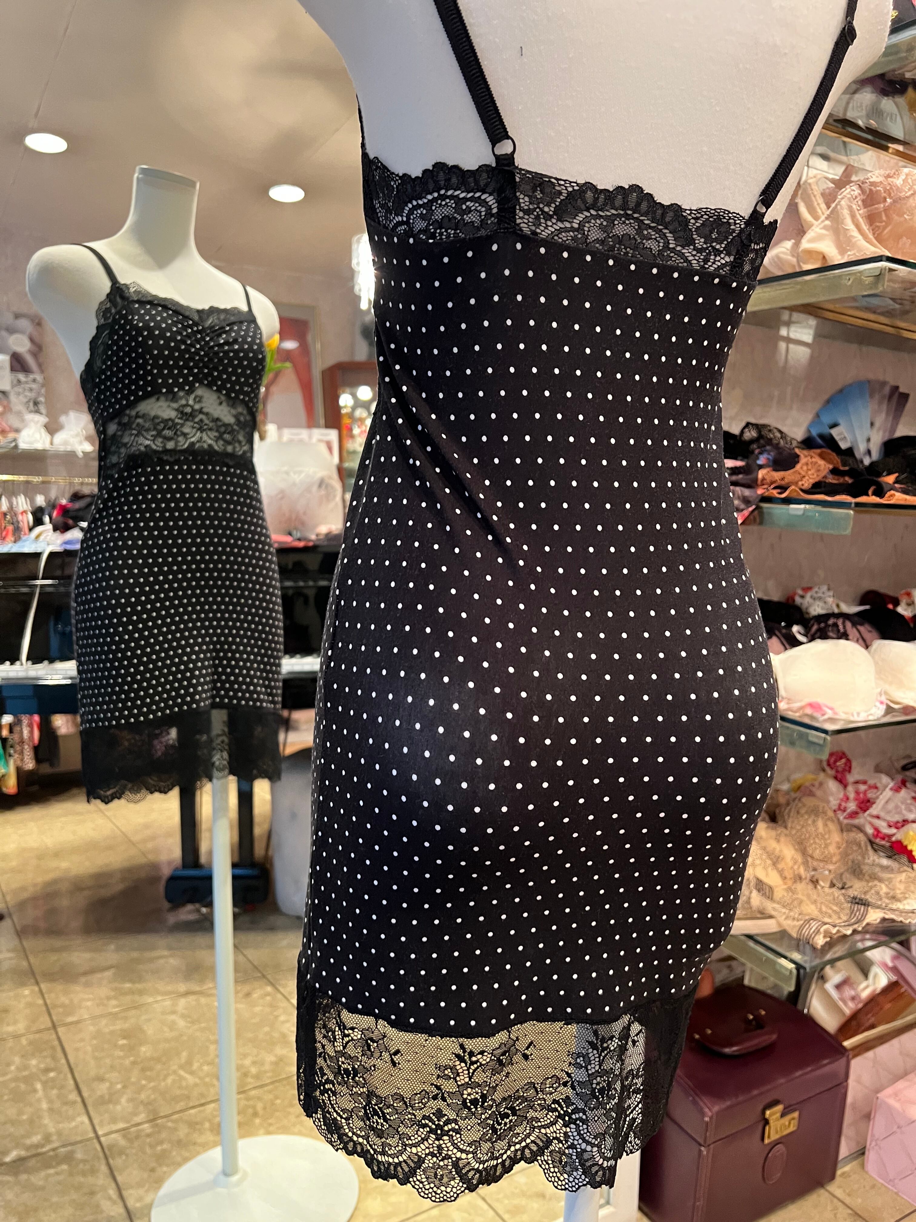 ストレッチ感のれある身体にフィットしたスリップです。小さなドットが可愛いです。